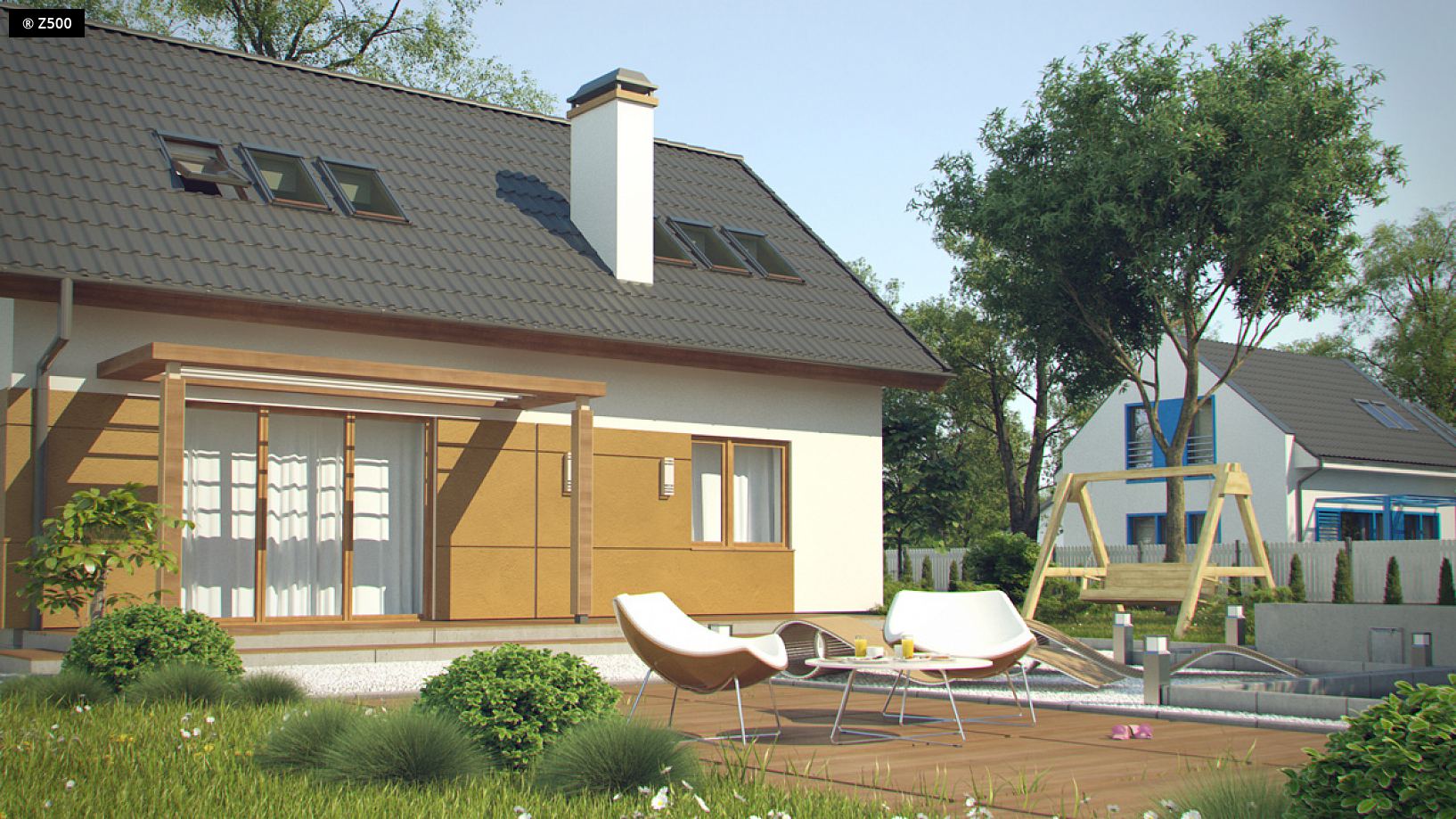 Projekt Z267 to funkcjonalny dom piętrowy o zgrabnej bryle i dwuspadowym dachu. Wykończenie elewacji ciekawymi materiałami powoduje, że dom wygląda schludnie i estetycznie.Parter to strefa dzienna domowników. Zlokalizowano tu jednoprzestrzennie połączony salon z jadalnią i z kuchnią, dużą łazienkę, sień z miejscem na szafę oraz pomieszczenie gospodarcze.Na piętrze natomiast znajdują się trzy sypialnie, w tym jedna z osobną garderobą, a także łazienka, która pomieści zarówno prysznic, jak i wannę. Z267 to idealna inwestycja dla tych, którzy poszukują niedużego domu, spełniającego wiele praktycznych funkcji.