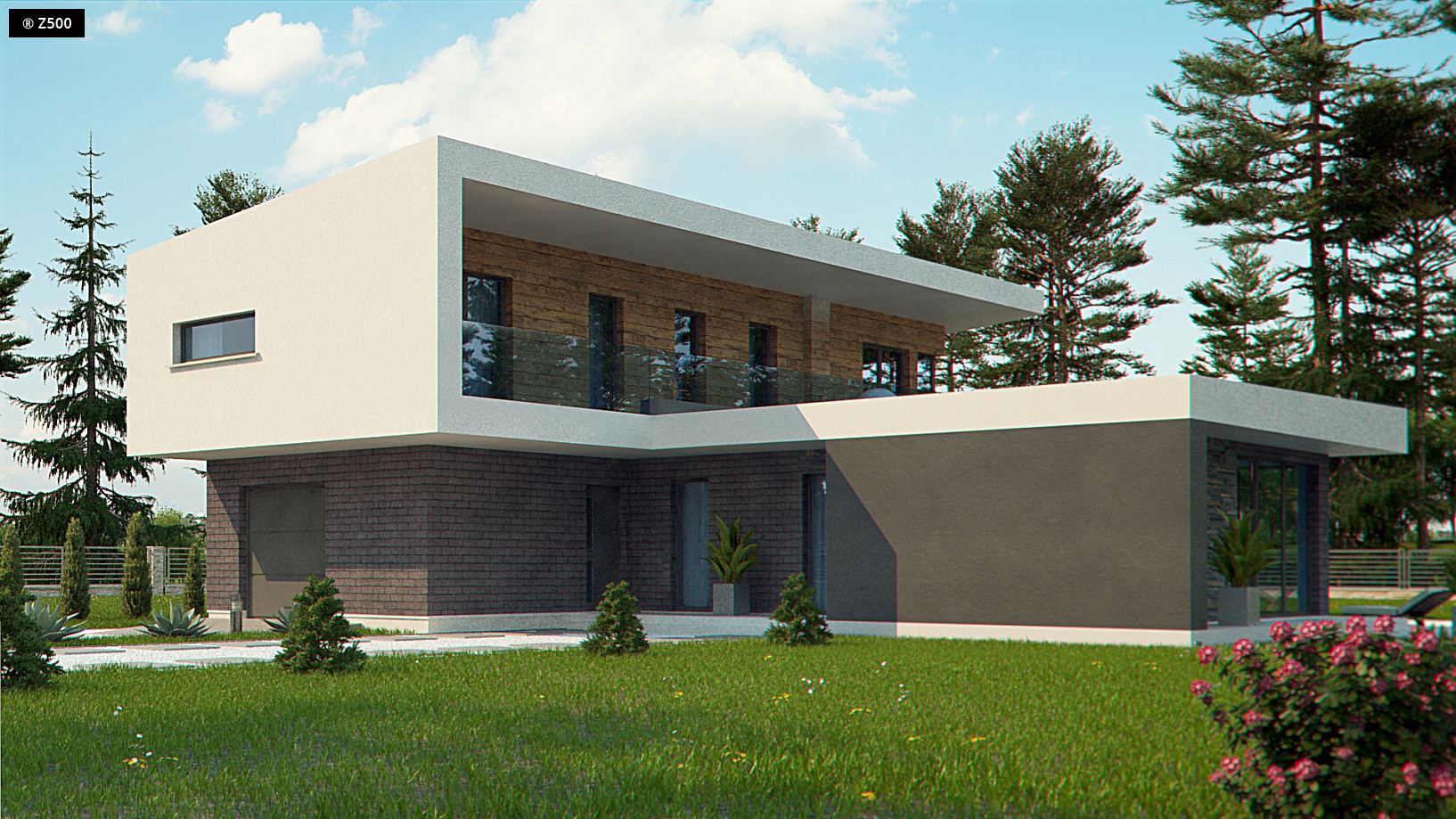 Projekt domu Zx70 wykonano w stylu nowoczesnym. Płaski dach, duże przeszklenia i możliwość zaadaptowania powierzchni nad salonem na taras to jego największe atuty. Połączenie drewnianej i kamiennej elewacji to elegancka harmonizacja ciepła i zimna. W sieni znajdują się drzwi prowadzące do schowka, który możemy przeznaczyć do chowania ubrań wierzchnich oraz butów, a także innych potrzebnych rzeczy. Parter to dzienna strefa domu. Zaprojektowano w niej przestronny salon z aneksem kuchennym i jadalnią jako częścią przeznaczoną do podejmowania gości i spędzania wolnego czasu z rodziną. Spory atut stanowi również dodatkowe pomieszczenie na pralnię. Pokój z przylegającą do niego łazienką możemy przeznaczyć dla odwiedzających nas gości, na piętrze zaś zlokalizować nocną strefę domu, do której dostęp będą mieli jedynie domownicy. Nocna strefa domu to trzy pokoje i dwie łazienki. Największa sypialnia posiada swoją własną łazienkę i garderobę, a duże przeszklenia dostarczają nam większej ilości światła. Projekt domu Zx70 jest dedykowany dla osób wymagających.