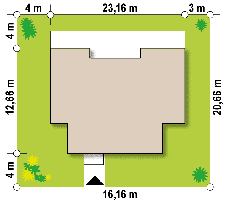 Dach: płaski, nachylenie 3°, pokrycie z dachówki, blachodachówki