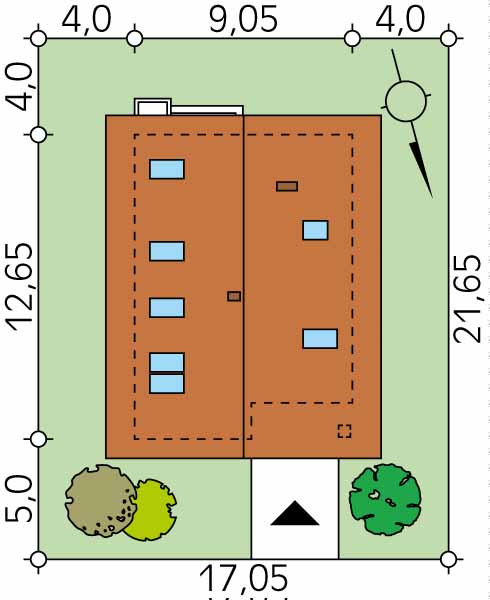 Dach: dwuspadowy, nachylenie 30°, pokrycie z dachówki