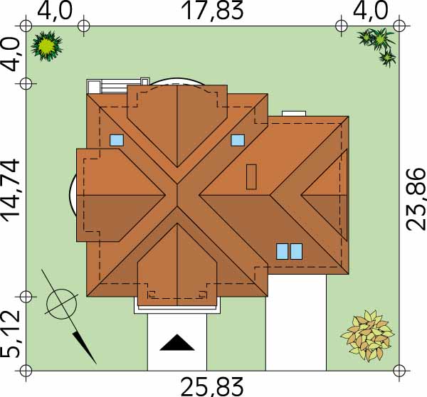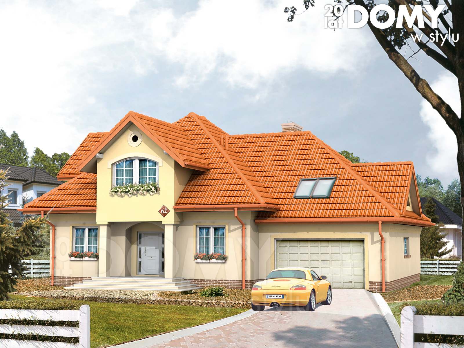 Dach: wielospadowy, nachylenie 40°, pokrycie z dachówki