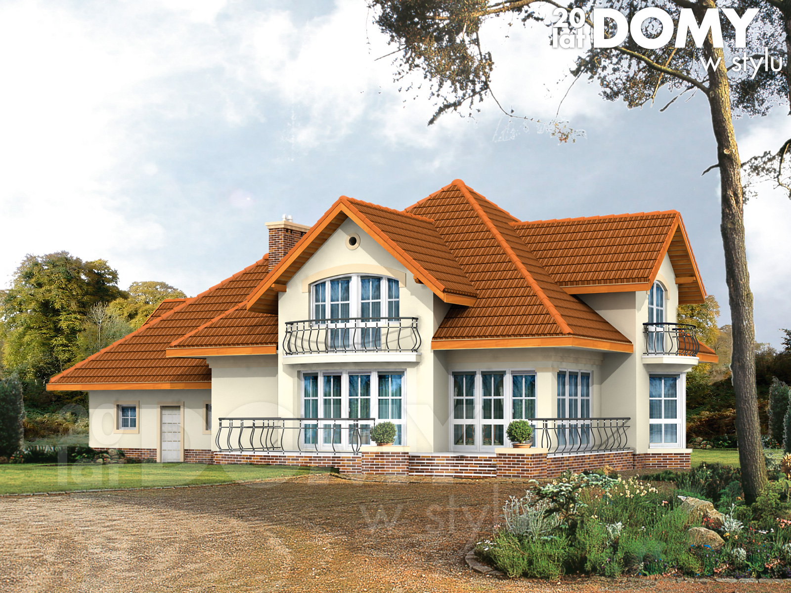 Dach: wielospadowy, nachylenie 45°, pokrycie z dachówki