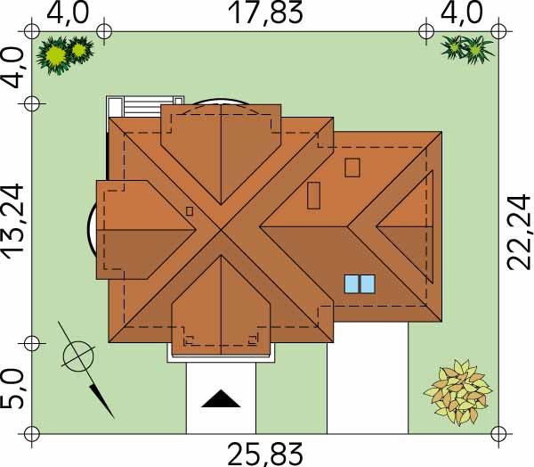Dach: wielospadowy, nachylenie 40°, pokrycie z dachówki