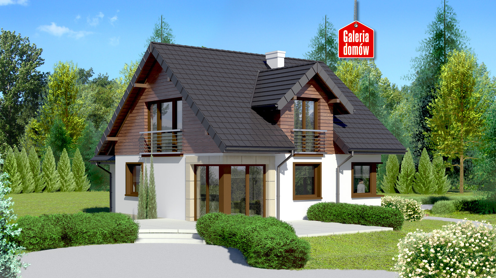 Dach: dwuspadowy, nachylenie 40°, pokrycie z dachówki ceramicznej lub betonowej