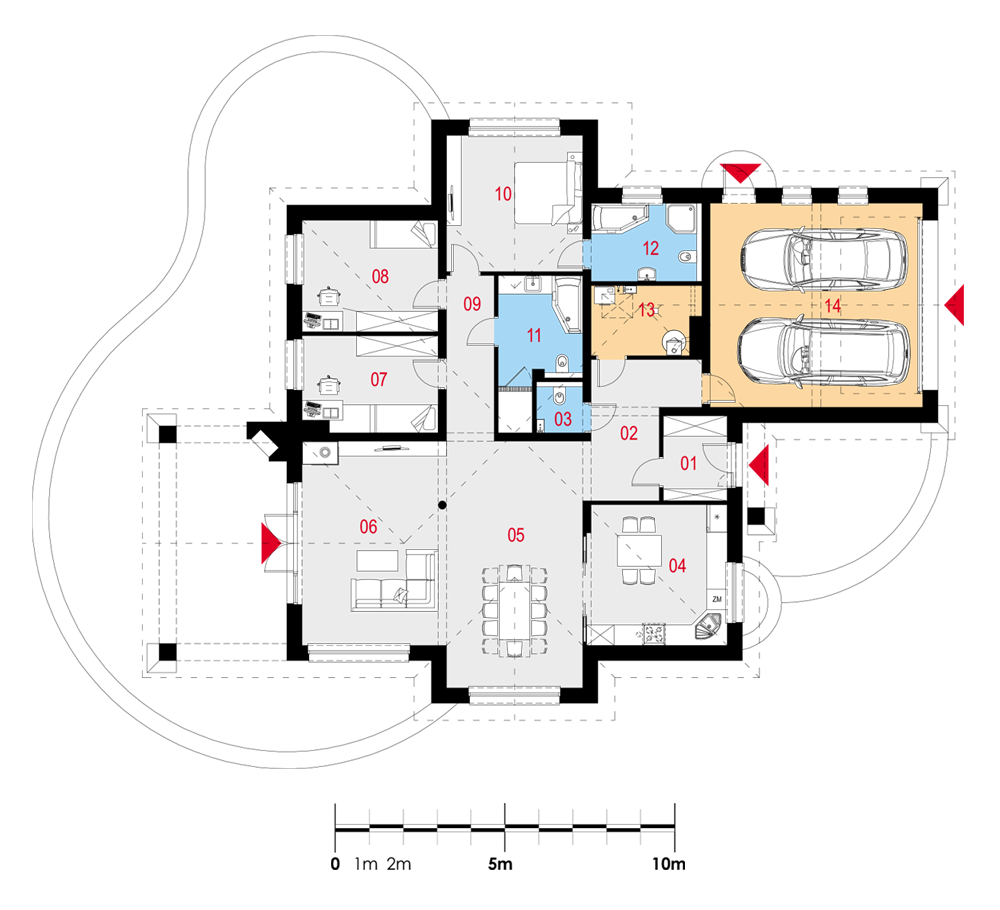 Duży, stylowy, parterowy dom jednorodzinny, wolnostojący, z poddaszem nieużytkowym oraz garażem dwustanowiskowym. Na układ funkcjonalny składają się pokój dzienny z wyjściem na taras, jadalnia, kuchnia, trzy pokoje, dwie łazienki, WC, garaż, pomieszczenie gospodarcze.