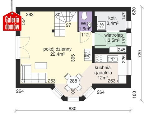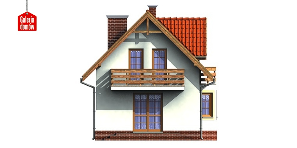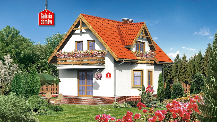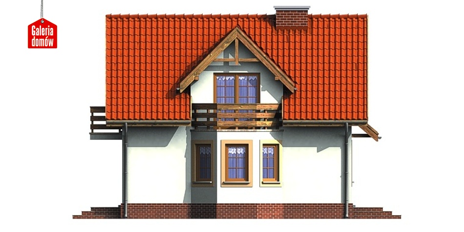 Połączenie klasycznej formy i ergonomicznych rozwiązań. Nieduży dom o ładnej architekturze, w którym wygodnie może zamieszkać trzy- lub czteroosobowa rodzina. Dom z dwuspadowym dachem. Zbudowany na planie prostokąta, dzięki czemu jest tani w budowie oraz ekonomiczny w użytkowaniu. Prostą bryłę budynku urozmaicają dwa balkony oraz daszek nad wejściem. Otwarta przestrzeń na parterze: pokój dzienny z wykuszem i wyjściem na taras. Na poddaszu dwie sypialnie i łazienka. To idealna propozycja dla małej rodziny ceniącej sobie komfort i oszczędność.