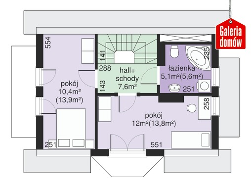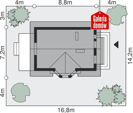 Dach: dwuspadowy, nachylenie 45°, pokrycie z dachówki ceramicznej lub betonowej