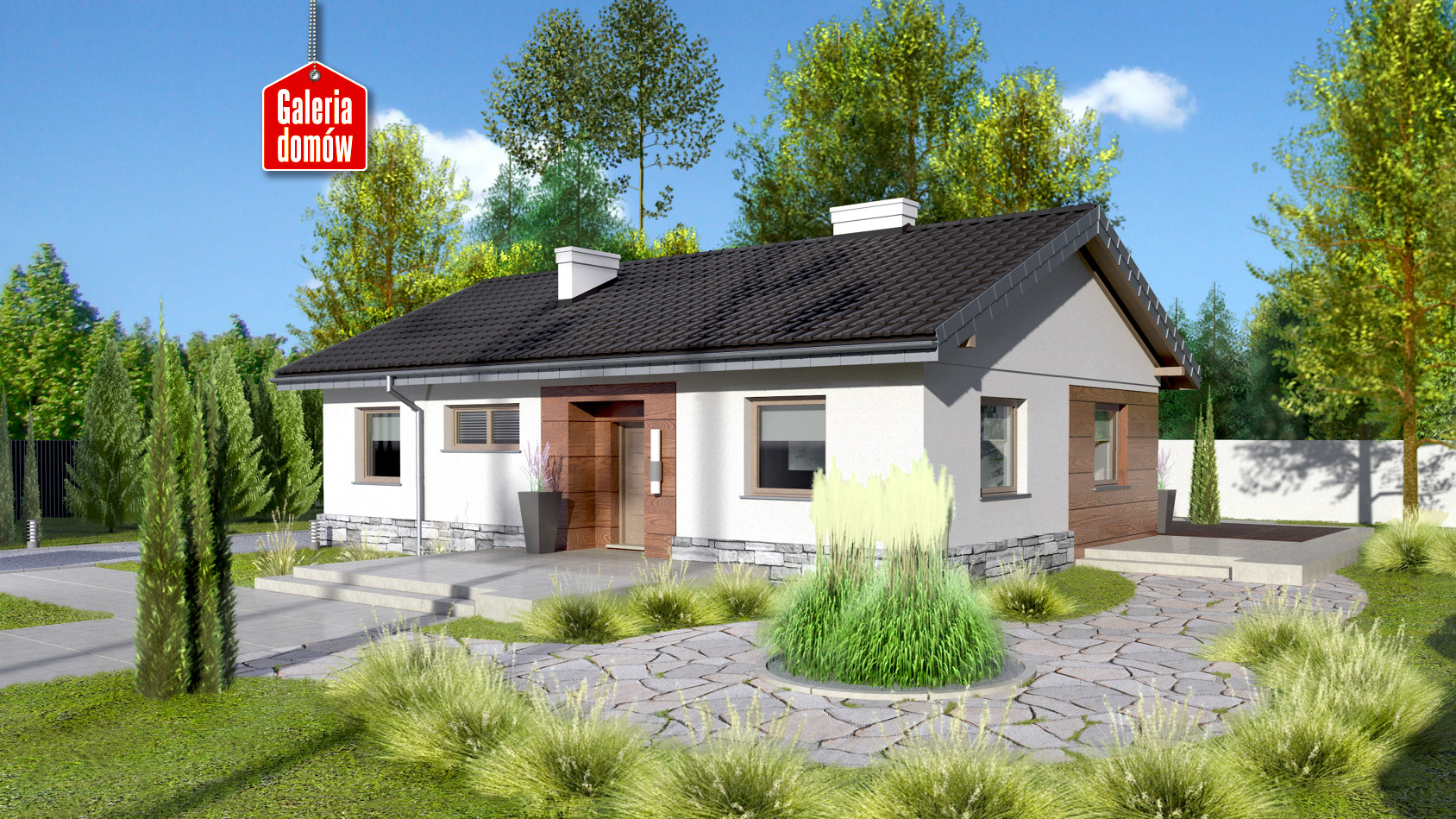 Myślałeś, że nie można zmieścić wszystkiego, co potrzebne do wygodnego życia w domku o powierzchni 70m²? Otóż jest to możliwe przy Klonowej 5! Dwie sypialnie, duży salon, kuchnia, łazienka a nawet garaż – majstersztyk projektancki i najwyższy poziom planowania przestrzennego. Ten „miniMAX” zapewni Ci swobodę życia w domu, nawet przy ograniczeniach małej działki i szczelnie dopiętym budżecie. No i nie ukrywajmy – jest niezwykle elegancki, co oczywiście też ma dla Ciebie znaczenie.