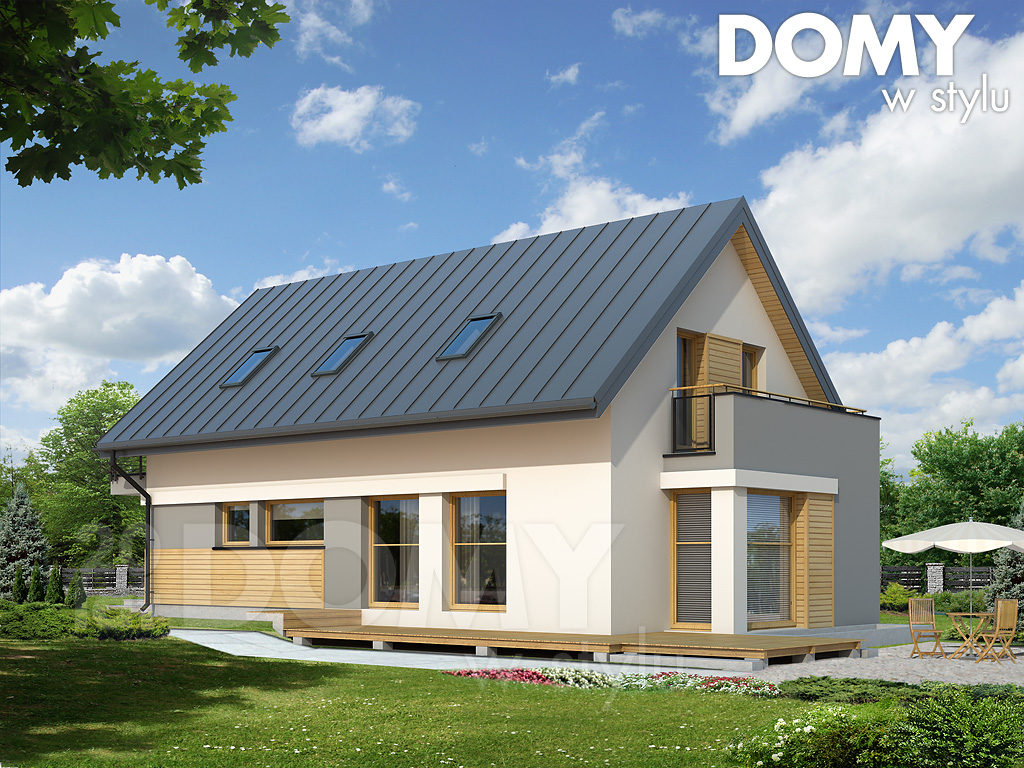 Dach: dwuspadowy, nachylenie 42°, pokrycie z blachy płaskiej w rąbek stojący