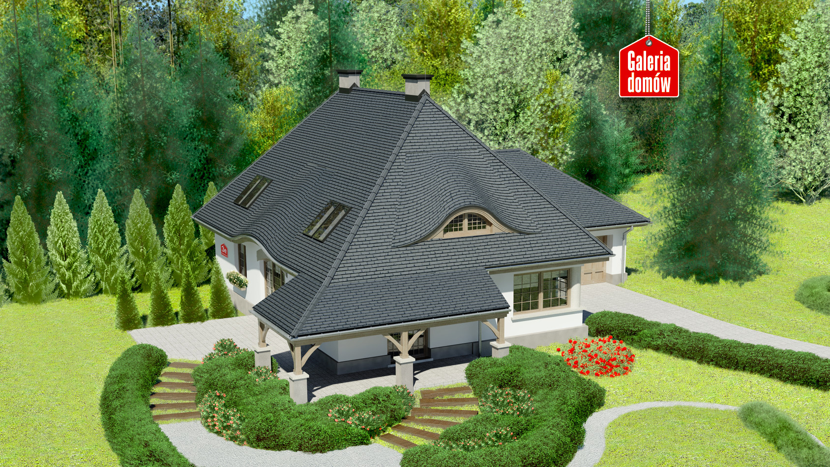 Dach: wielospadowy, nachylenie 45°, pokrycie z dachówki ceramicznej lub betonowej