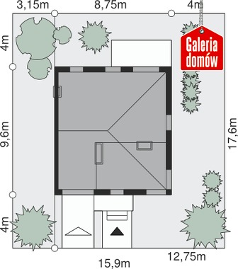 Dach: wielospadowy, nachylenie 25°, pokrycie z blachy