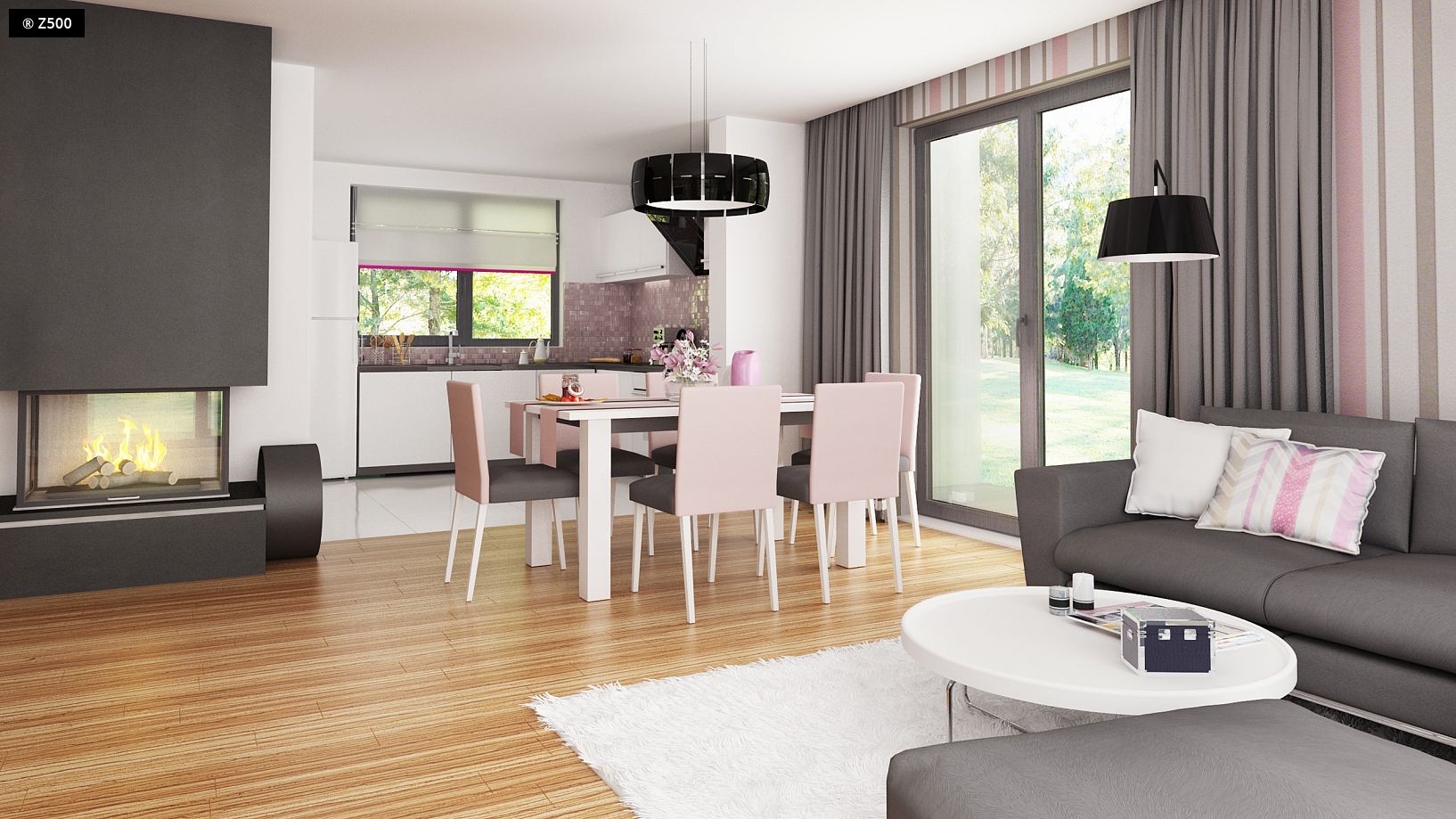 Z173 to wygodny projekt domu z poddaszem o przyjemnym charakterze. Zewnętrze ściany zdobią naturalne, drewniane elementy elewacji. Popielata dachówka doskonale komponuje się z brązową barwą stolarki okiennej. Prosta konstrukcja bryły podkreśla współczesny styl domu.W projekcie przewidziany jest także spory garaż dwustanowiskowy. Wnętrze domu jest przestronne i funkcjonalne. Jasny salon subtelnie połączony jest z jadalnią. Skrajnie usytuowany kominek zapewnia perfekcyjne ogrzanie wnętrza domu. Otwarta kompozycja kuchni optycznie powiększa całe pomieszczenie. Podręczna spiżarka to idealne miejsce do przechowywania większych zakupów i domowych przetworów. Funkcjonalny gabinet do pracy, może z powodzeniem pełnić rolę miłego pokoju gościnnego. Warto zwrócić uwagę na komfortową sypialnię z osobistą łazienką. Na piętrze znajdują się trzy przestronne sypialnie z prywatnymi garderobami. Komfortowa łazienka oddzielona jest od pralni osobnym pomieszczeniem.