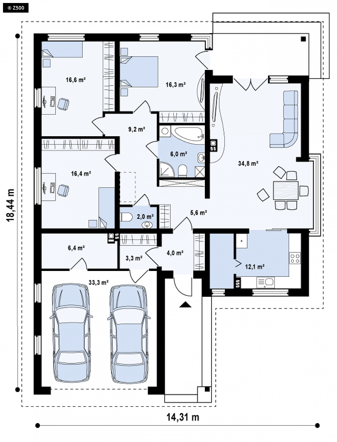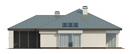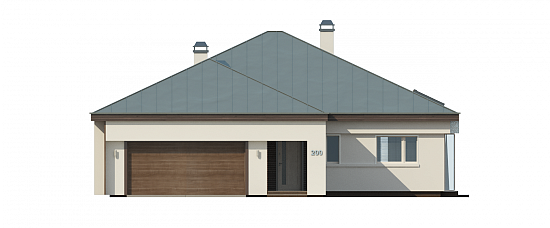 Z200 to komfortowy dom parterowy z garażem dwustanowiskowym dostępnym od frontu budynku. Elewacje i bryła wyróżniają się nowoczesną aczkolwiek spokojną i wyważoną architekturą z oryginalnymi dodatkami.