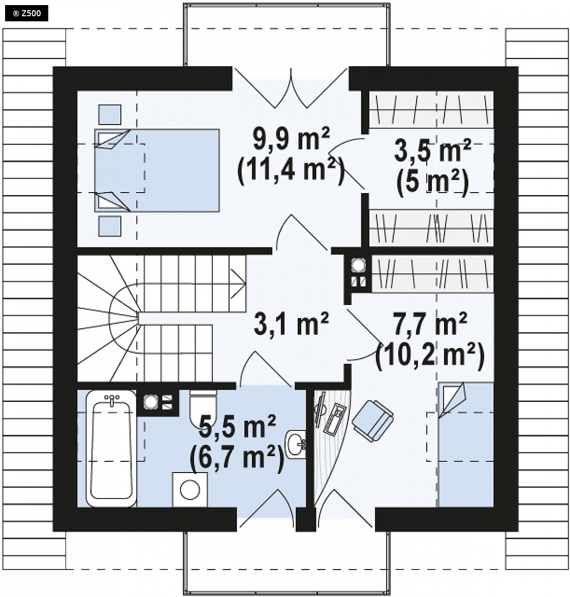 Dach: dwuspadowy, nachylenie 40°, pokrycie z dachówki, blachodachówki