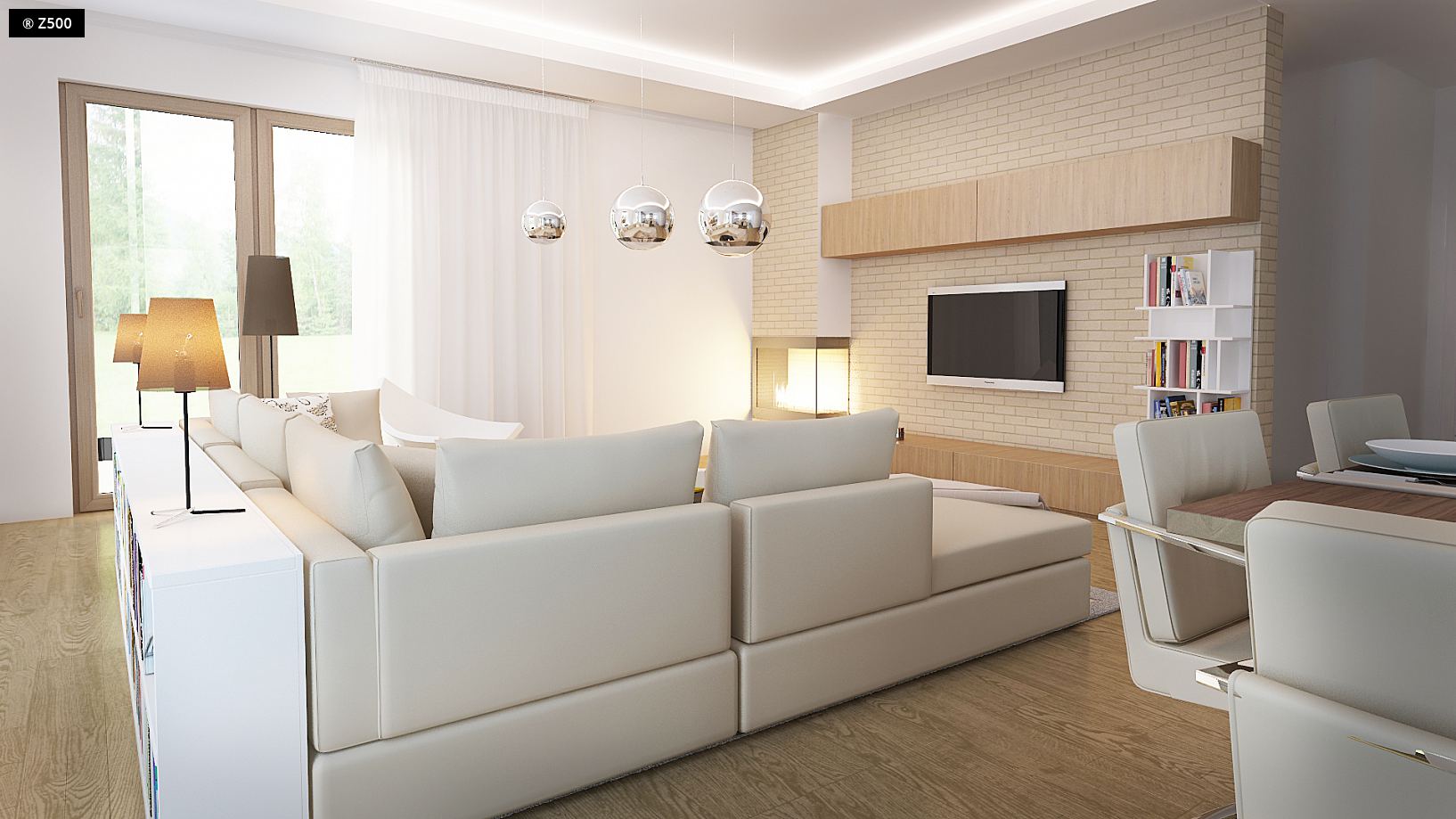 Projekt Z301 to kompleksowy dom, zawierający w swoim wnętrzu prawie wszystko, czego można oczekiwać od klasycznego domu parterowego. Bryła na planie prostokąta, z połączonym, wspólnym dachem, garażem na 2 auta wykończona została dzięki subtelnym detalom jak: dobrana kolorystyka, drewno elewacyjne czy jasny klinkier. Na większej działce dom prezentuje się jak gustowna rezydencja. Wnętrze dzieli się na strefy: dzienną, nocną i gospodarczą. Z głównego holu dostępna jest odizolowana część nocna domu z pokojem do pracy, dwoma sypialniami, które posiadają własne garderoby i łazienką oraz 'master bedroom' posiada własną garderobę oraz łazienkę. Część dzienna to olbrzymi salon z kominkiem i wyjściem na zadaszony taras, połączony z otwartą kuchnią, która posiada spiżarkę. Istnieje możliwość zabudowy podcienia celem powiększenia powierzchni wypoczynkowej wewnątrz. Dodatkowo umieszczono tu niewielka łazienkę dla gości. Zaplecze gospodarcze domu to dwustanowiskowy garaż oraz pomieszczenie techniczne z bezpośrednim przejściem do sieni.