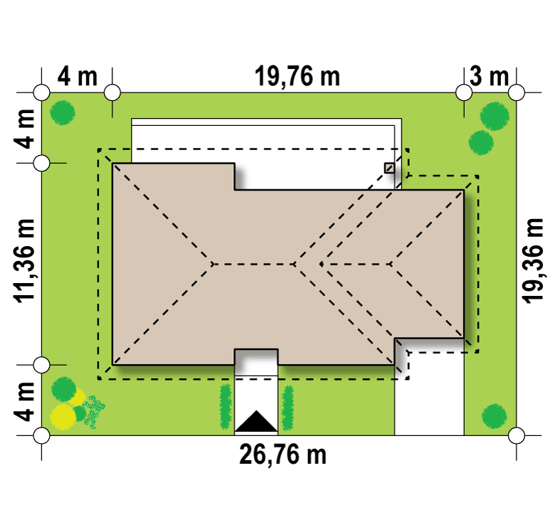 Dach: wielospadowy, nachylenie 25°, pokrycie z dachówki, blachodachówki