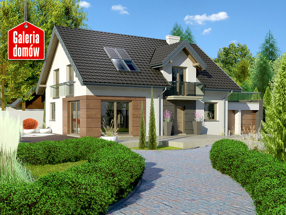 Dach: dwuspadowy, nachylenie 40°, pokrycie z dachówki ceramicznej lub betonowej
