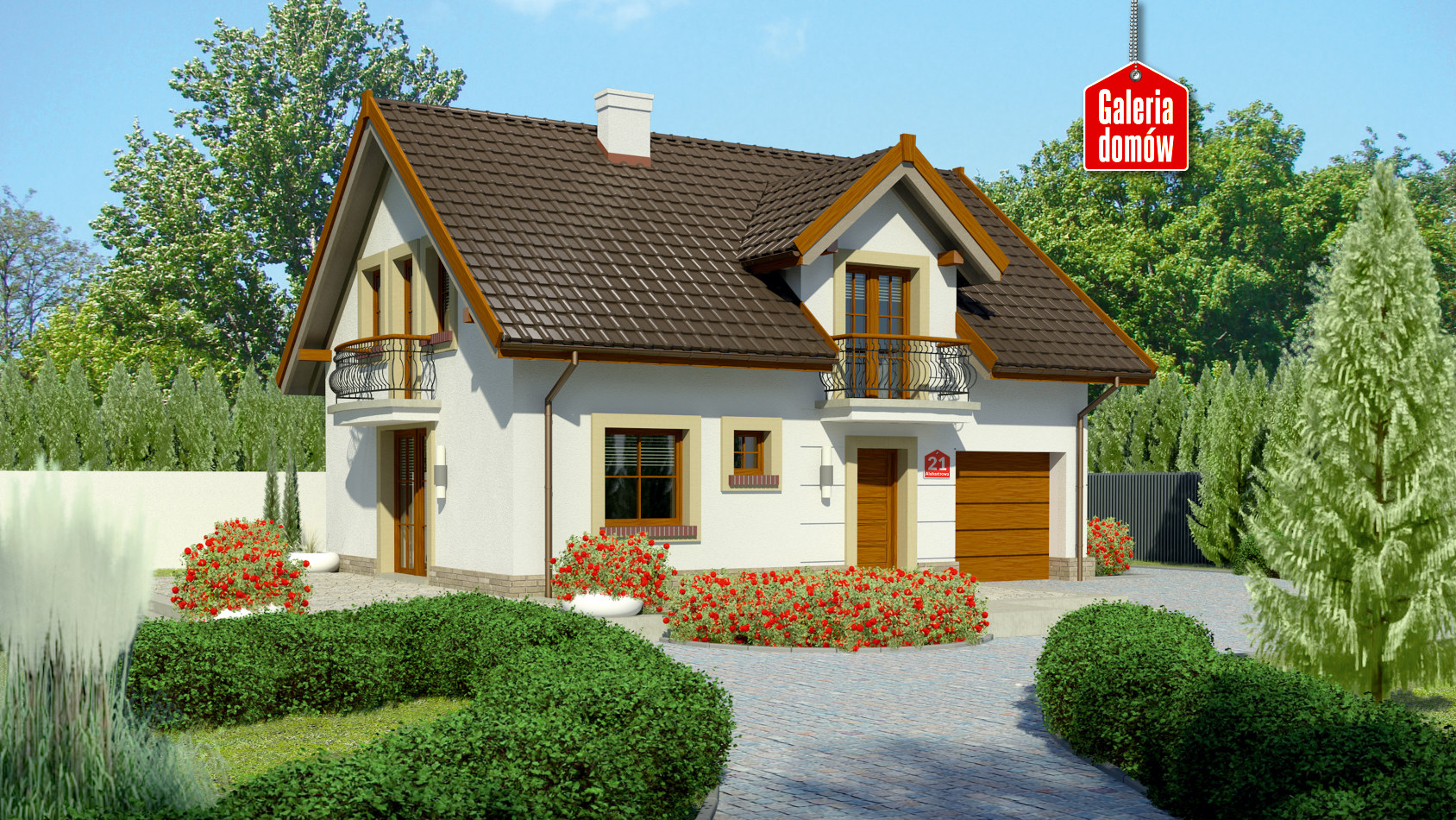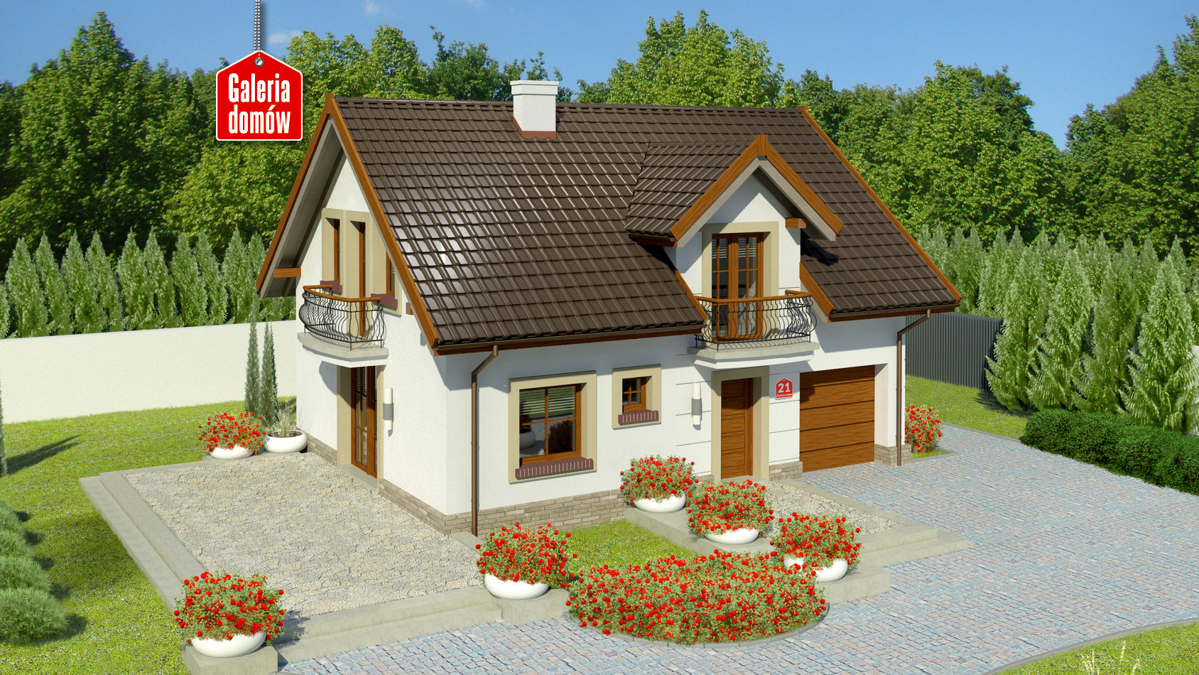Dach: dwuspadowy, nachylenie 40°, pokrycie z dachówki ceramicznej lub betonowej