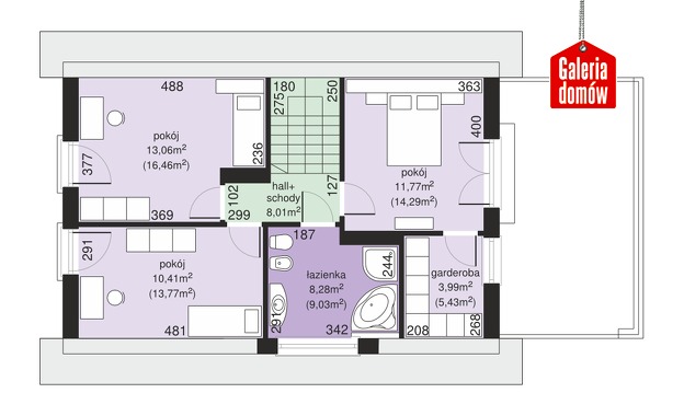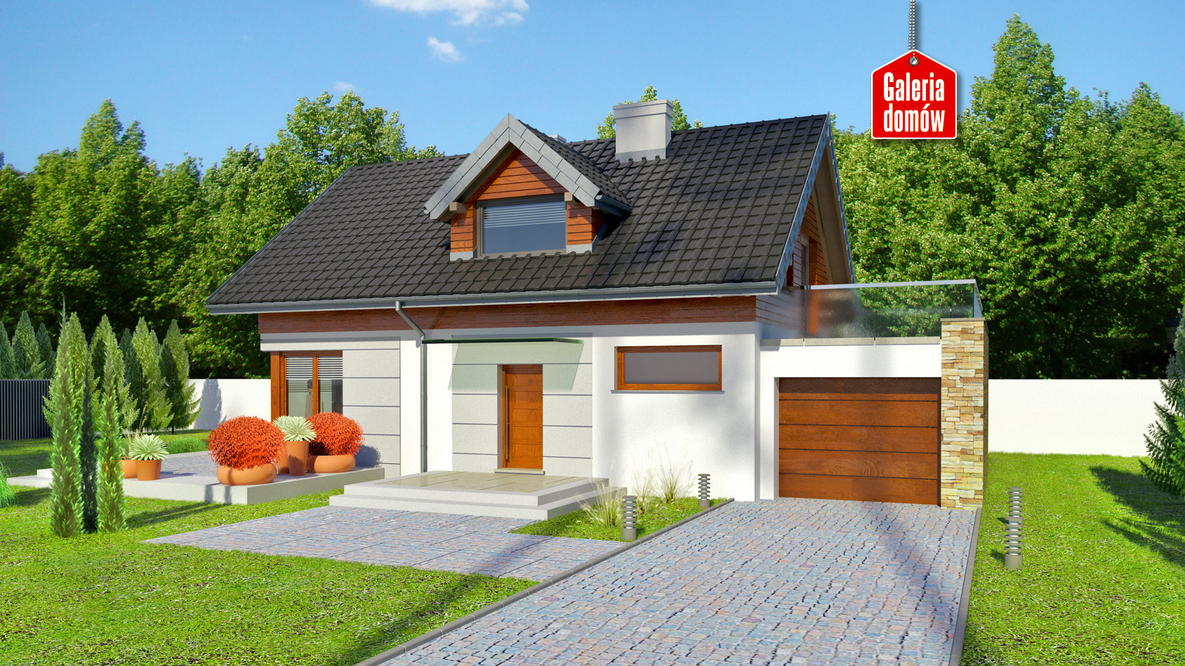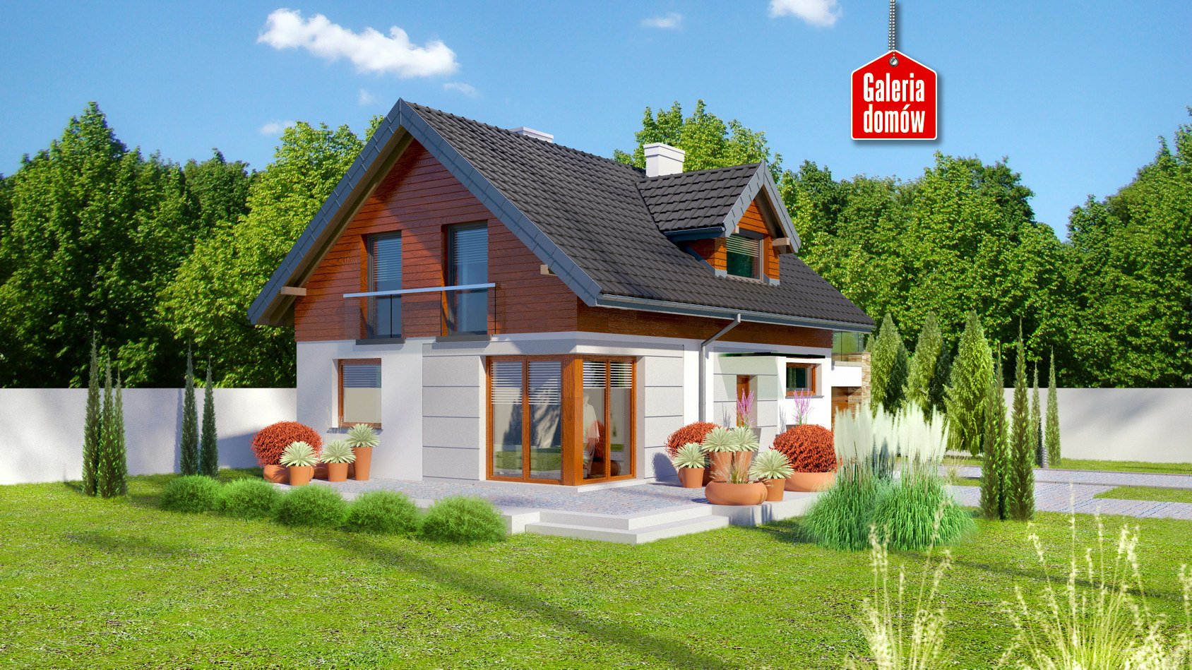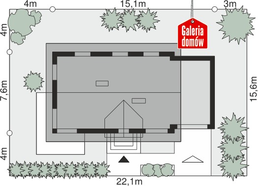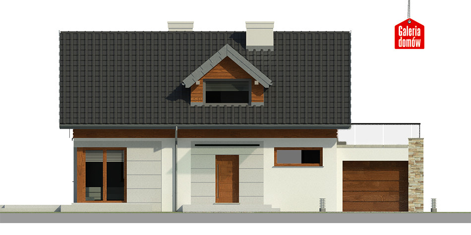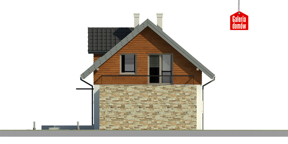 Dach: dwuspadowy, nachylenie 40°, pokrycie z dachówki ceramicznej lub betonowej