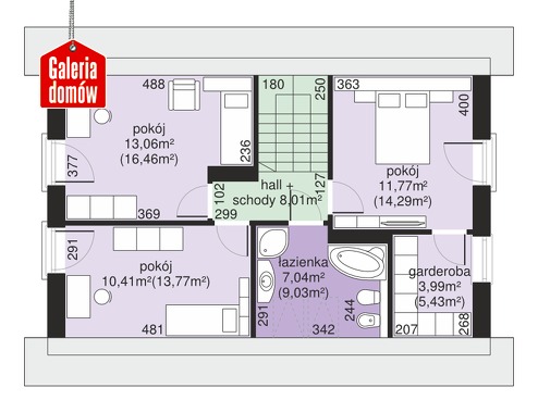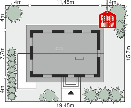 Dach: dwuspadowy, nachylenie 40°, pokrycie z dachówki ceramicznej lub betonowej