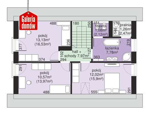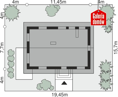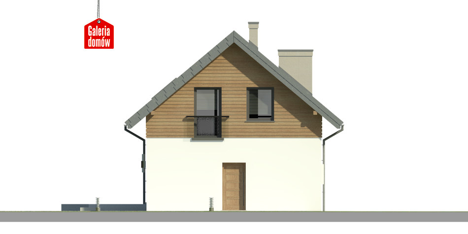 Dach: dwuspadowy, nachylenie 40°, pokrycie z dachówki ceramicznej lub betonowej