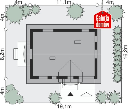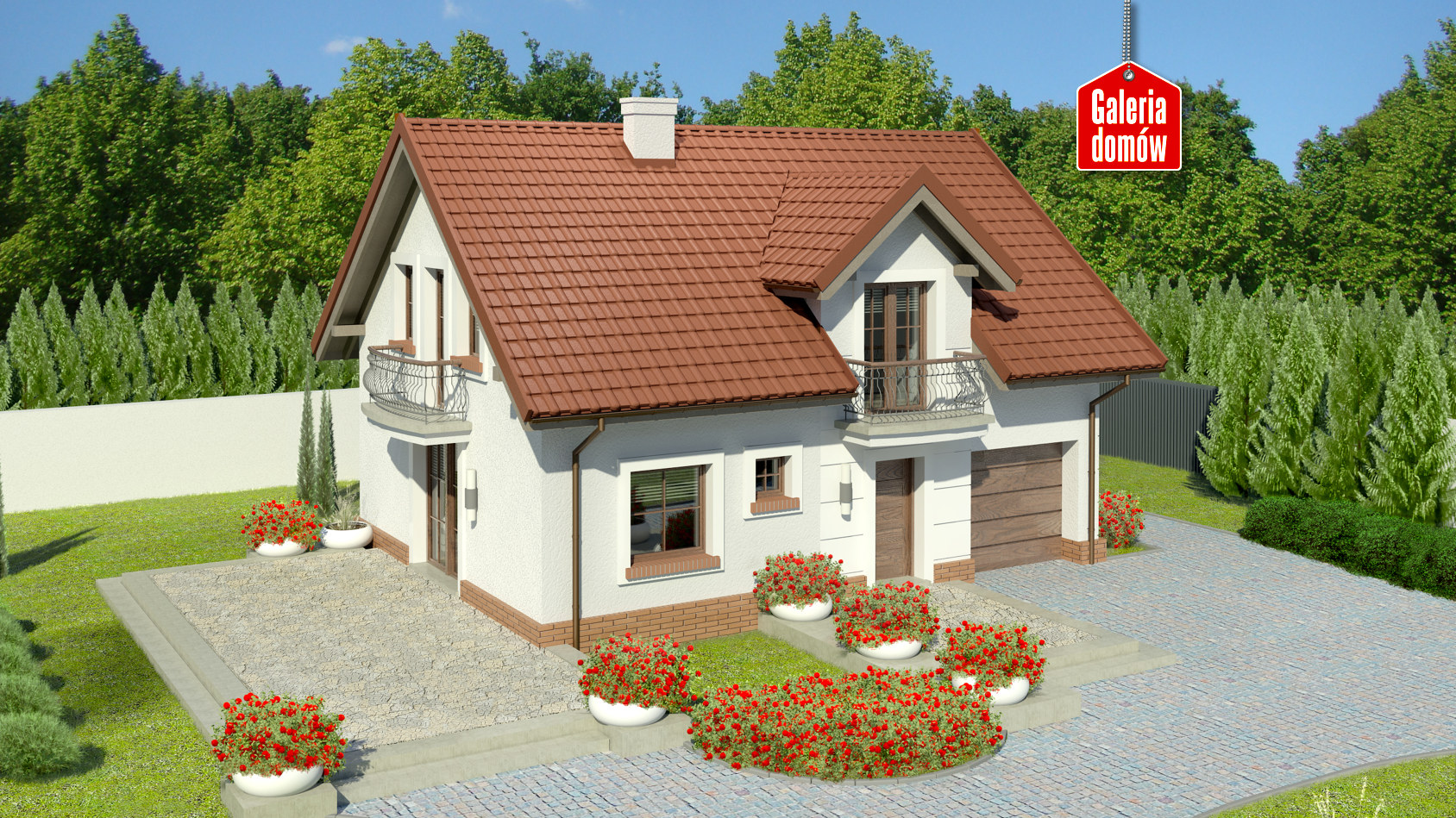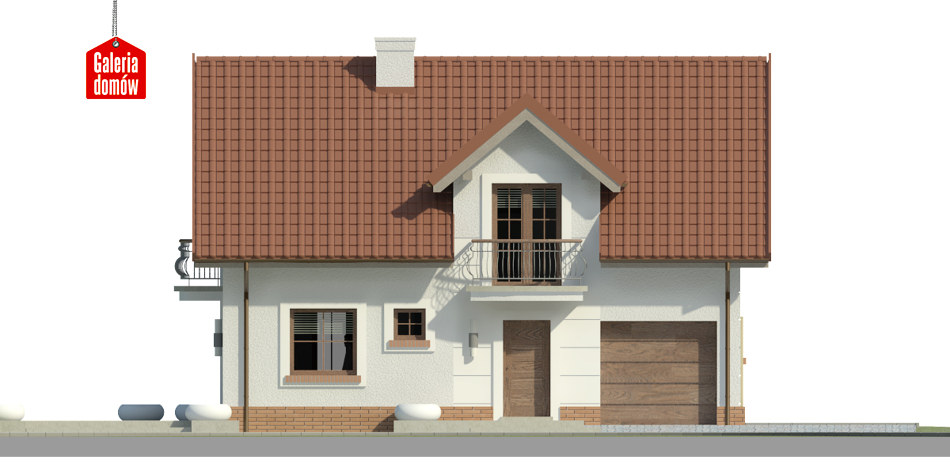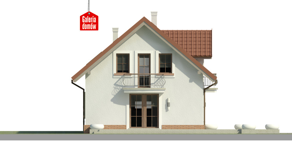 Dach: dwuspadowy, nachylenie 40°, pokrycie z dachówki ceramicznej lub betonowej