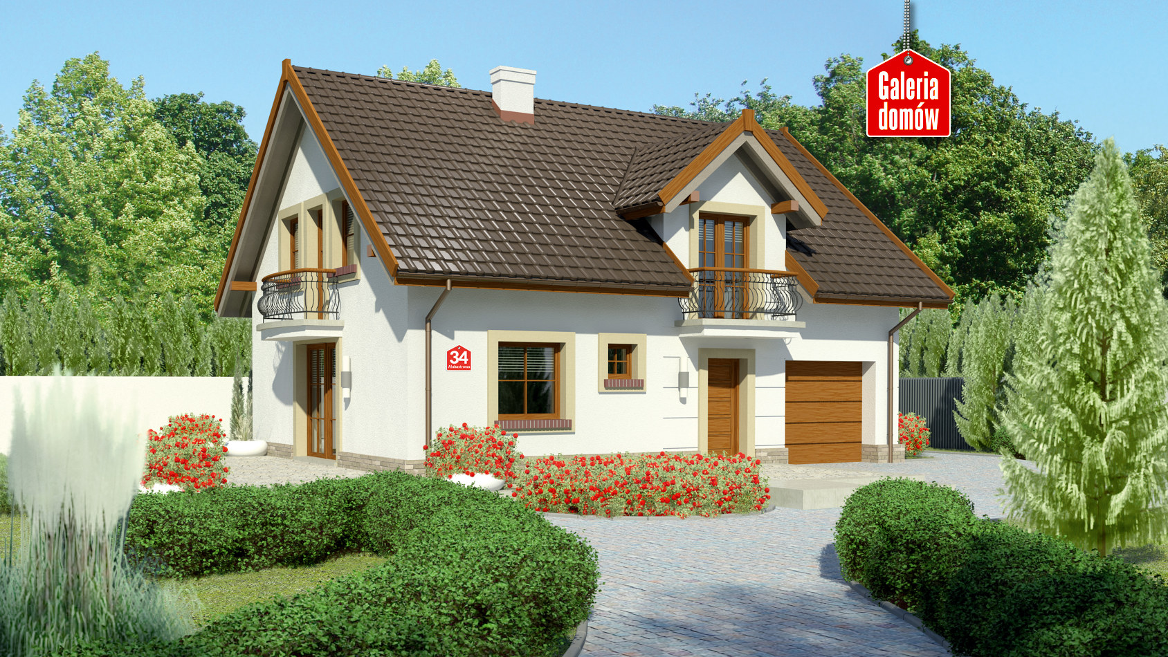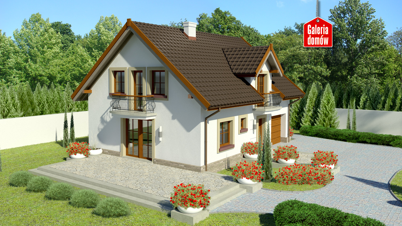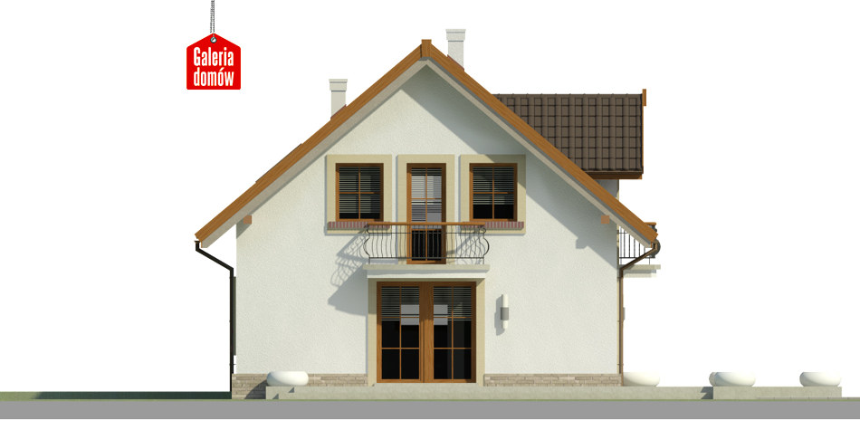 Dach: dwuspadowy, nachylenie 40°, pokrycie z dachówki ceramicznej lub betonowej