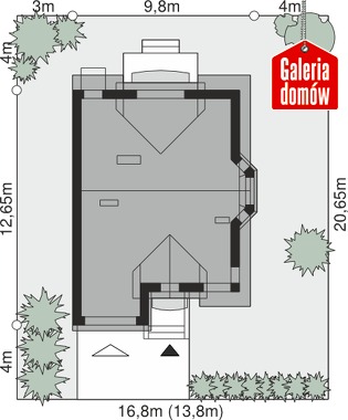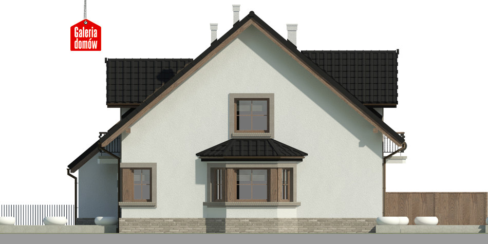 Dach: dwuspadowy, nachylenie 40°, pokrycie z dachówki ceramicznej lub betonowej