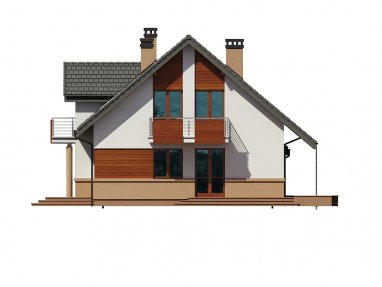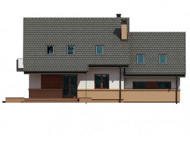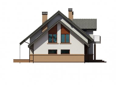 PUCHATEK N 2G to nieduży dom o prostej budowie i dwuspadowym dachu, który w stosunku do klasycznej wersji domu oznaczonej jako PUCHATEK 2G otrzymał nową, nowoczesną szatę graficzną, Obie wersje domu zaprojektowano tak aby spełniały parametry domów energooszczędnych. W parterowej części frontowej domu znajduje się kuchnia z aneksem jadalnym połączona z salonem, który usytuowano tak aby zapewnić dobrą ekspozycję zarówno w elewacji bocznej jak i tylnej. Program użytkowy parteru uzupełniają: pokój (gabinet -który można połączyć z salonem), łazienka z prysznicem i garderoba, a ponadto dwustanowiskowy garaż, kotłownia na olej lub gaz lub paliwo stałe (np. ekogroszek, pelety) i pomieszczenie gospodarcze. Strefę nocną sytuowaną na poddaszu tworzą trzy pokoje przeznaczone dla dzieci ,garderoba i łazienka oraz oddzielna, przestronna część dla rodziców składająca się z dużej sypialni, garderoby i łazienki. Ten niewielki gabarytowo dom spełnia wszelkie funkcje nawet dla 6-osobowej rodziny. W przypadku mniejszej liczby domowników powierzchnię poddasza można dowolnie zagospodarowywać poprzez łączenie pomieszczeń lub zmianę sposobu użytkowania np. na pokój rekreacyjny, gabinet, pralnię czy suszarnię.