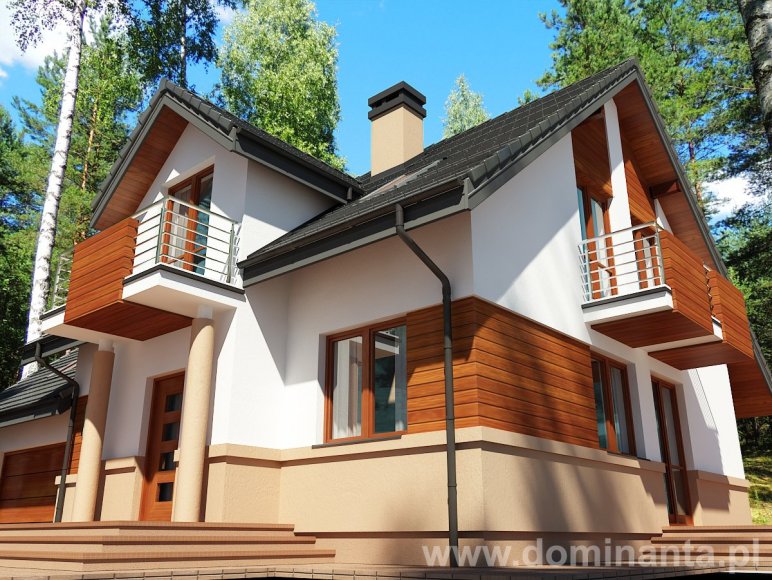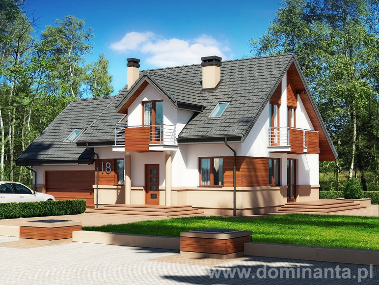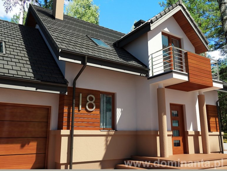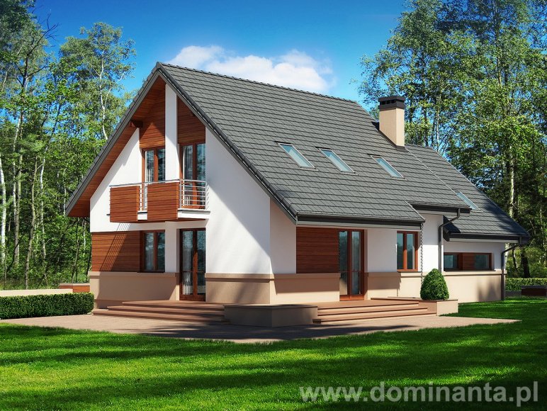 Dach: dwuspadowy, nachylenie 40°, o konstrukcji drewnianej z pokryciem z dachówki ceramicznej, cementowej lub blachodachówki