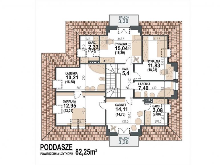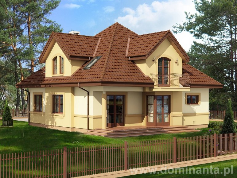 Dach: wielospadowy, nachylenie 40°, o konstrukcji drewnianej z pokryciem z dachówki ceramicznej, cementowej lub blachodachówki