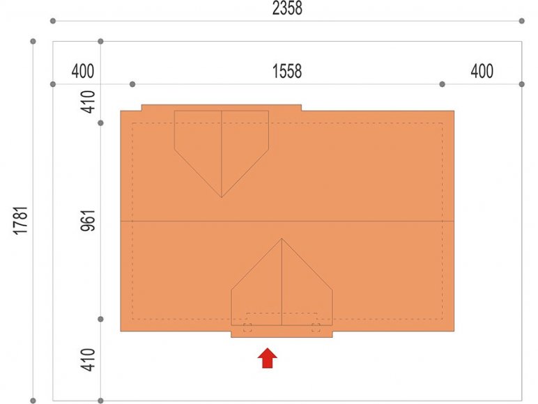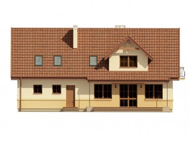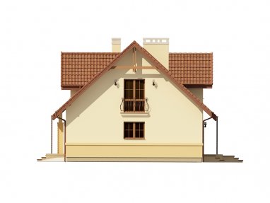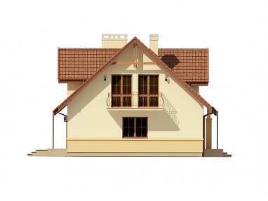 Dżin 2G to wersja projektu Dżin z garażem dwustanowiskowym. Jest to klasyczny dom z dachem dwuspadowym, który świetnie nadaje się na szeroką działkę. Ciekawymi detalami są delikatne zadaszenia nad wejściem i tarasem z tyłu domu, lukarny i balkony. Wnętrze domu cechuje zwięzły system komunikacyjny oraz duża przestrzeń, w której znajduje się kuchnia, jadalnia i salon. Warto zwrócić uwagę na praktyczne wejście do pomieszczenia gospodarczego znajdujące się z tyłu domu – w zależności od rodzaju ogrzewania może ułatwić wnoszenie opału do kotłowni. Poddasze tworzą trzy duże sypialnie – każda z wyjściem na balkon. Sypialnia rodziców posiada oddzielną łazienkę i garderobę.