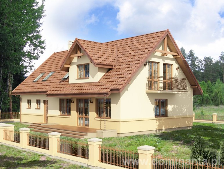 Dach: dwuspadowy, nachylenie 42°, o konstrukcji drewnianej z pokryciem z dachówki ceramicznej, cementowej lub blachodachówki