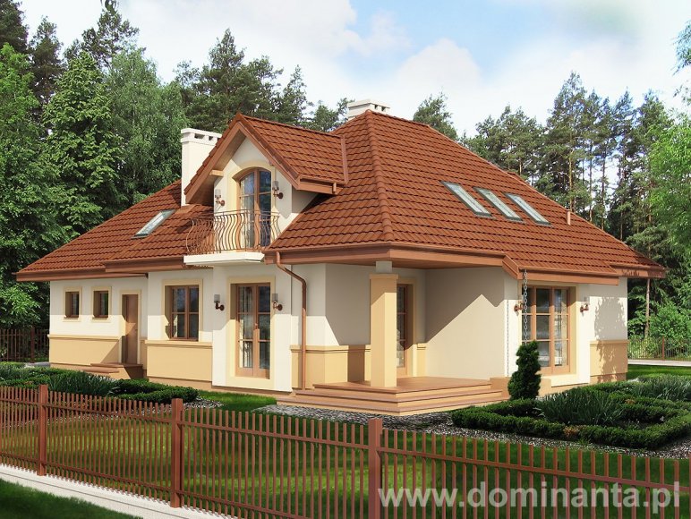 Dach: wielospadowy, nachylenie 40°, o konstrukcji drewnianej z pokryciem z dachówki ceramicznej, cementowej lub blachodachówki
