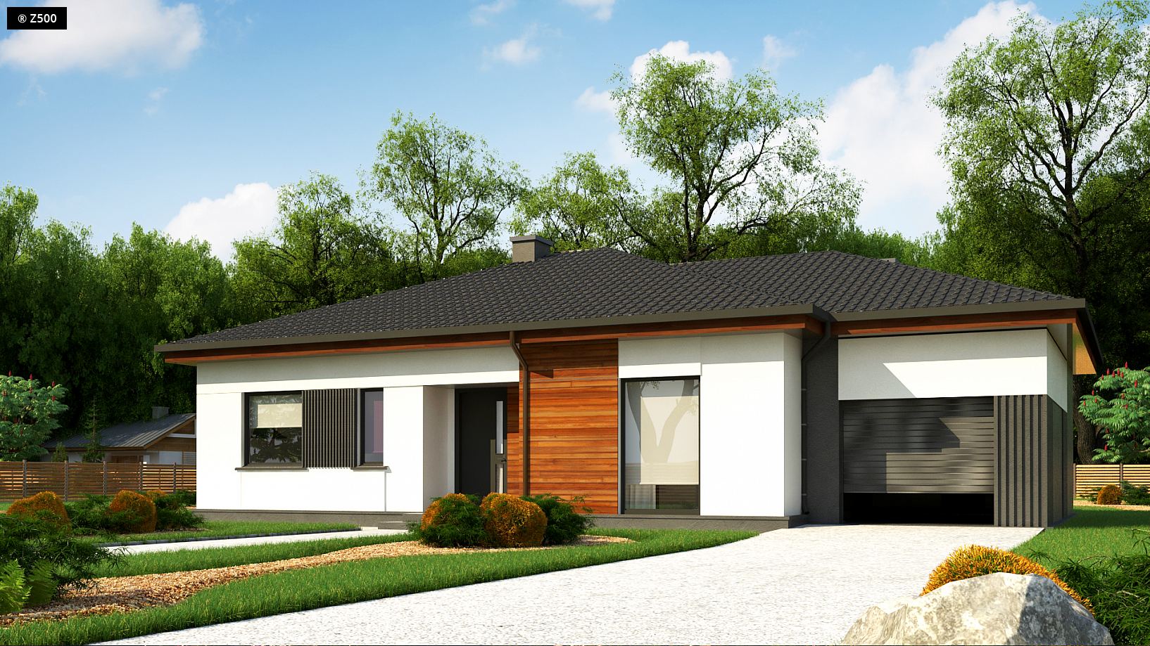 To parterowy budynek z jednostanowiskowym garażem i dachem kopertowym. Posiada duże przeszklenia i zadaszenia nad częścią wejściową i tarasową. Na wykończenie elewacji składa się ciepła okładzina drewniana, oraz tynk w kolorach białym i grafitowym. W ogrodzie rosną drzewa owocowe, gdzie wiosną cień zagląda w zielony owoc, jak w oczy… Wypoczynek w ich cieniu na hamaku stanowi prawdziwy relaks. Przestronny, doświetlony z dwóch stron salon połączono z gustownie urządzoną jadalnią. Stamtąd wyjście na zadaszony taras, gdzie będziemy mogli spędzać czas wspólnie z rodziną i przyjaciółmi, nawet jeśli urządzanie przyjęć nie jest naszą mocną stroną. Kuchnię można oddzielić dodając ściankę działową. Nocną część domu stanowią trzy nieduże, ustawne pokoje o powierzchni przekraczającej 10 m2. Mogą zostać przeznaczone na pokoje dziecięce, gabinety pracy i sypialnię rodziców. Ta ostatnia posiada przylegającą garderobę, o której marzy każda Pani domu. Projekt Z375 dedykowany jest dla pary z dwojgiem dzieci.