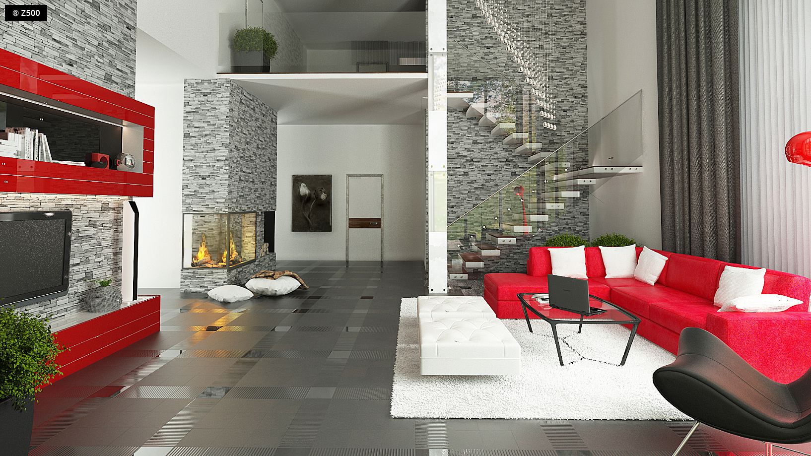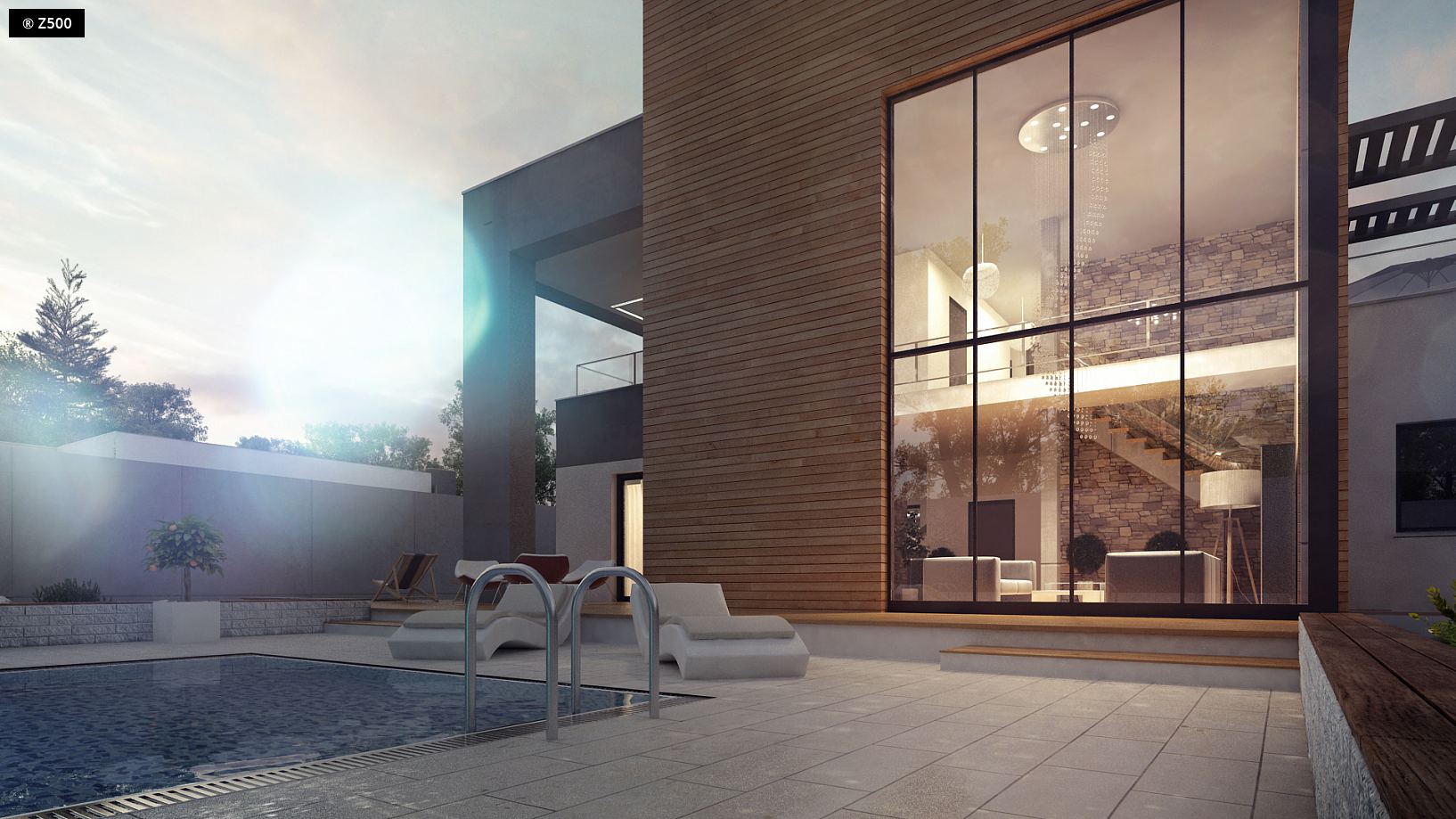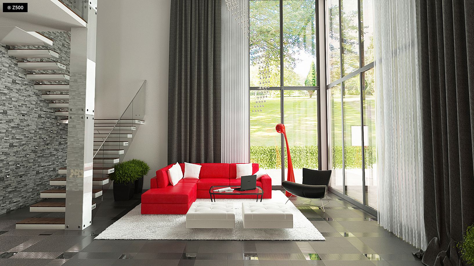 Zx108 to nowoczesny, dwukondygnacyjny dom z dużymi przeszkleniami, tarasami na piętrze oraz dużym garażem . Połączenie ciemnej elewacji z wykończeniem z egzotycznego drewna doskonale komponuje się z chłodną bielą tynku i zielenią ogrodu. We wnętrzu poszczególne strefy życia dziennego wydzielono za pomocą akcentów takich jak: narożny kominek pomiędzy salonem i jadalnią czy kuchenna „wyspa” z bufetem. Na parterze znajduje się dodatkowy pokój/gabinet oraz obszerna część gospodarcza z garażem dwustanowiskowym. Piętro to strefa nocna domu. Zlokalizowano tu trzy przestronne sypialnie - każda z indywidualnym wyjściem na taras oraz dwie łazienki - garderoby. Ten nowoczesny dom prezentuje się najlepiej na dużych podmiejskich działkach oraz w zwartej miejskiej zabudowie. Projekt ZX108 przypadnie do gustu osobom, szukającym funkcjonalnych i sprawdzonych rozwiązań w nowoczesnej formie.