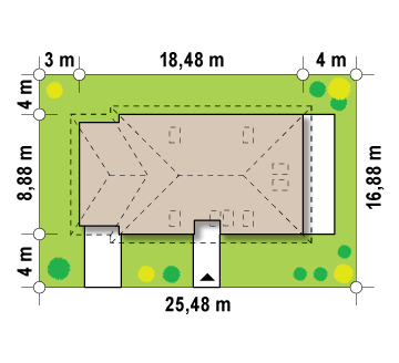 Dach: wielospadowy, nachylenie 32°/22°, pokrycie z dachówki, blachodachówki