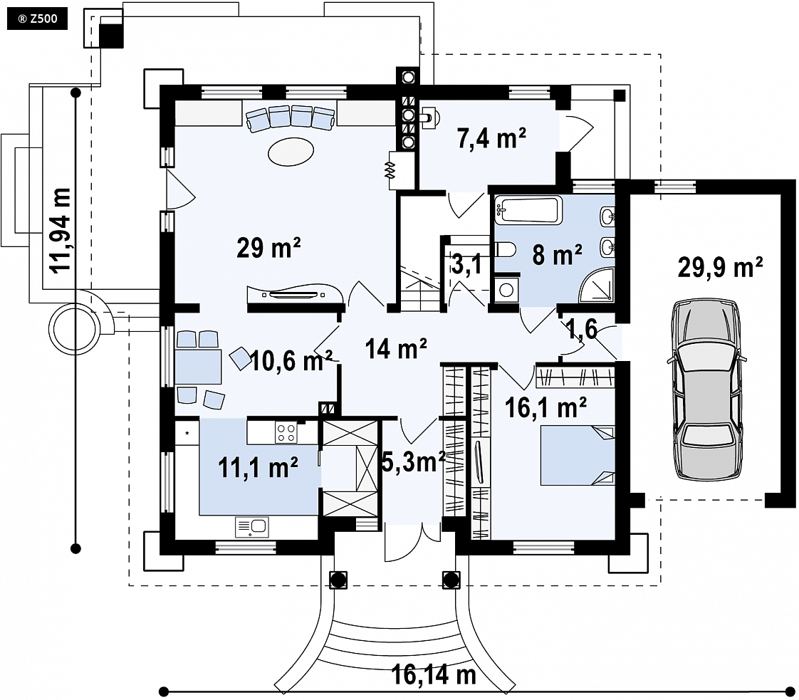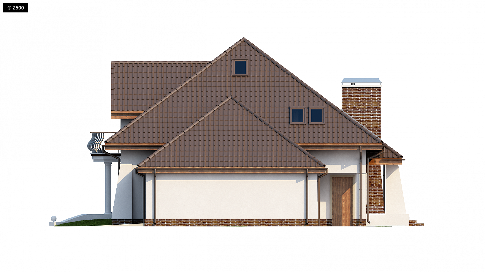 Z109 to projekt funkcjonalnego domu z poddaszem użytkowym.Charakter domu podkreślają zgrabne przypory oraz półkolisty balkonik od frontu. Wnętrze domu jest komfortowe. Salon, kuchnia i jadalnia są oddzielnymi pomieszczeniami, pomiędzy którymi można przemieszczać się z łatwością. Kuchnia posiada własną spiżarkę do przechowywania podręcznych produktów. Z salonu, można bezpośrednio wyjść na taras, z którego rozciąga się widok na ogród.Na parterze znajduje się także pokój gościnny oraz pokój kąpielowy. Pomieszczenie gospodarcze ma odrębne wyjście od strony ogrodu. Na piętrze miejsce znalazły trzy przytulne sypialnie z lukarnami, zwiększającymi powierzchnię użytkową (pow. 1.90 m). Największa, dedykowana rodzicom, posiada własny balkonik od frontu. Łazienka doświetlona dwoma oknami połaciowymi ma miejsce na wannę, prysznic, dwie umywalki oraz szafkę na niezbędne przybory.