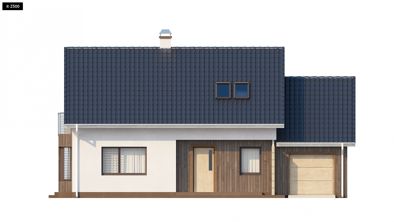 Z120 to nowoczesny projekt domu jednorodzinnego. Jasne, ciepłe barwy okładzin ścian oraz grafitowa dachówka to modne, ponadczasowe zestawienie na długie lata. Dom zachwyca naturalnym wdziękiem oraz funkcjonalnym układem pomieszczeń. Główną zaletą projektu jest duży, przestronny salon. Ciekawym rozwiązaniem jest usytuowanie pomieszczenia gospodarczego pomiędzy kuchnią a salonem. Na parterze znajduje się dodatkowy, wygodny pokój. Doskonale sprawdzi się jako gabinet do pracy lub pokój dla gości. Jest tu także komfortowa łazienka z miejscem na prysznic. Na piętrze znajduje się część nocna z trzema pokojami. Główna sypialnia posiada własną garderobę. Dodatkowa garderoba oraz przestronna łazienka czynią dom wygodnym i przyjaznym dla mieszkańców. Z120 to propozycja domu nowatorskiego w rozwiązaniu oraz eleganckiego w wyglądzie. Jest idealny dla osób, które cenią sobie komfortowe życie w oryginalnym stylu.