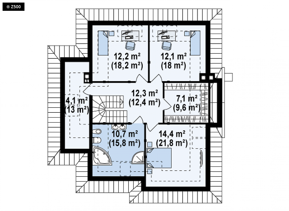 Dach: wielospadowy, nachylenie 45°, pokrycie z dachówki, blachodachówki