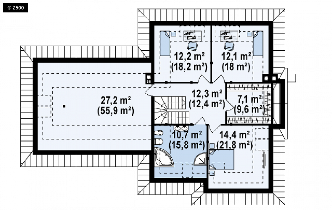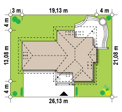 Dach: wielospadowy, nachylenie 45°, pokrycie z dachówki, blachodachówki