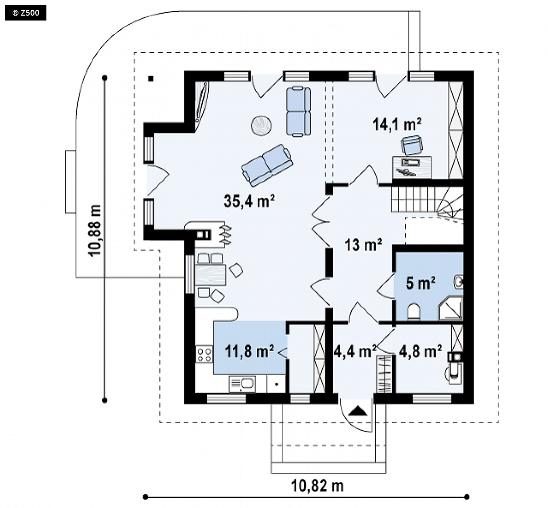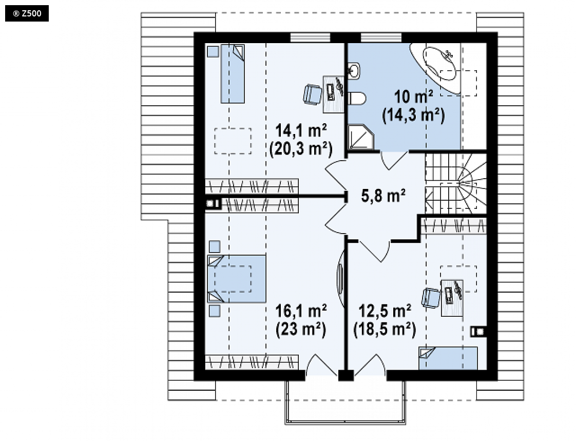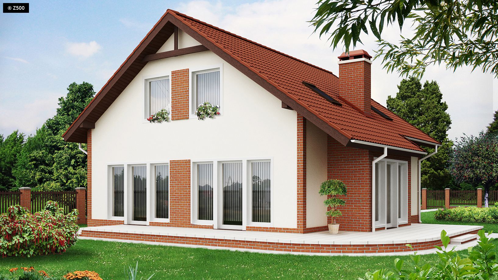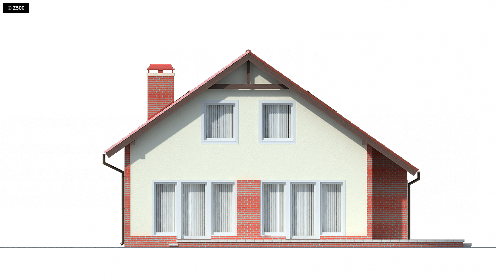 Projekt Z63 to dom o prostej bryle z dwuspadowym dachem. Elewacje zewnętrzne i wykończenie budynku klinkierową okładziną sprawiają, że dom wygląda schludnie i estetycznie. Na parterze znajduje się przestronny salon połączony z jadalnią i kuchnią. Dodatkowo przewidziano powierzchnię, którą można przeznaczyć na gabinet, pokój gościnny lub wykorzystać na powiększenie samego salonu. Przy strefie wejściowej zlokalizowano łazienkę, sień z miejscem na szafę i bezpośrednim przejściem do pomieszczenia gospodarczego. Poddasze przeznaczone jest głównie jako „część nocna”, gdzie każdy z domowników ma do dyspozycji jeden z trzech wygodnych i ustawnych pokoi oraz dużą, wspólną łazienkę. Pomieszczenia na poddaszu przewidują tradycyjne okna w ścianach szczytowych oraz miejsca na szafy i schowki. Dom Z63 dobrze wkomponuje się zarówno w zabudowę miejską jak i podmiejską.