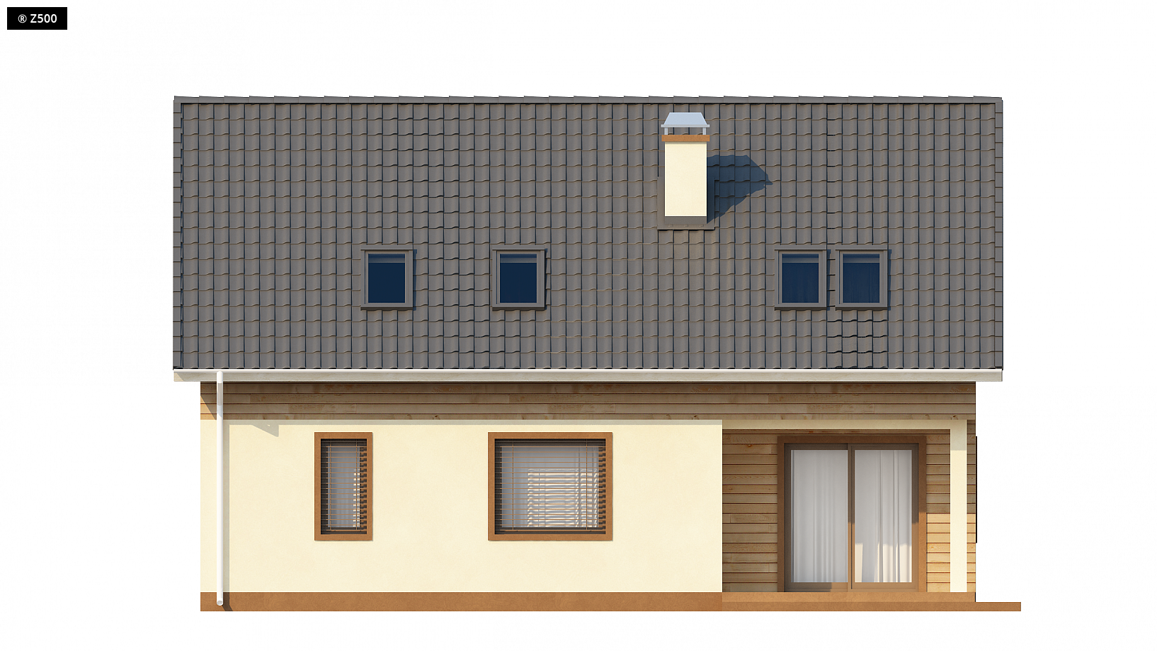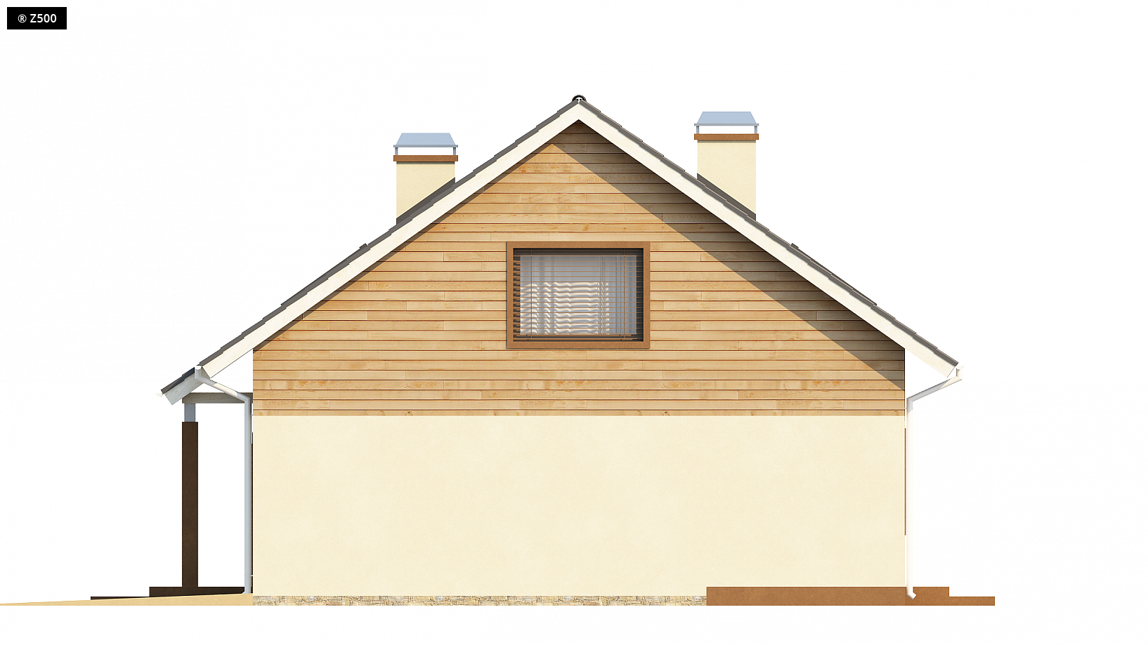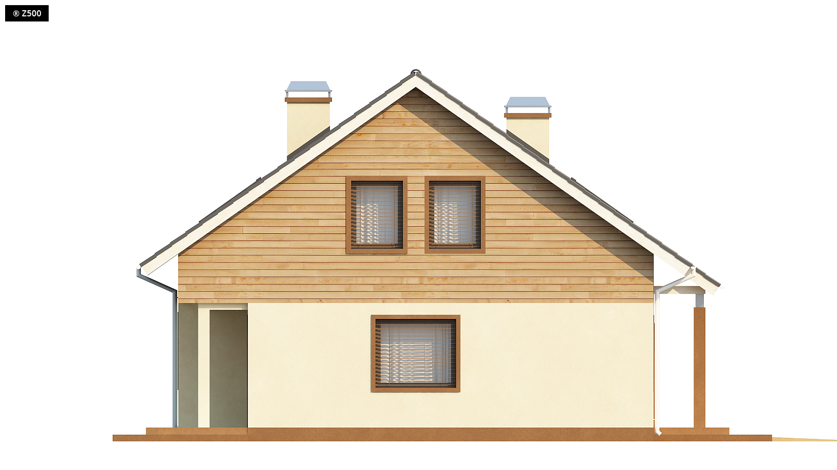 Projekt Z88 to wygodny dom z poddaszem użytkowym oraz garażem jednostanowiskowym w bryle. Dwuspadowy dach oraz prosta konstrukcja wpływają na optymalną oraz szybką i tanią budowę. Elewację domu można wykończyć elementami z drewna, co nada ciepłego oraz atrakcyjnego charakteru. Zadaszone wejście prowadzi do sieni, gdzie jest miejsce na pojemne szafy. Na parterze znajduje się również salon połączony z jadalnią i dobrze doświetloną kuchnią, WC, oraz pomieszczenie gospodarcze do którego mamy dostęp zarówno z kuchni jak i z garażu. Z jadalni mamy wyjście na zadaszony taras, przeszklone drzwi zapewnią kontakt z naturą i wprowadzą ją do wnętrza. Klatką schodowa wchodzimy na poddasze, tam znajdują się trzy sypialnie oraz dwie łazienki. W każdym z pomieszczeń jest miejsce na przestronne szafy, co pozwoli na łatwiejsze zachowanie porządku. Z88 jest domem funkcjonalnym i ekonomicznym, idealnym dla ludzi szukających niewielkiego domku, w którym piętro stanowi część sypialną, natomiast parter część dzienną.