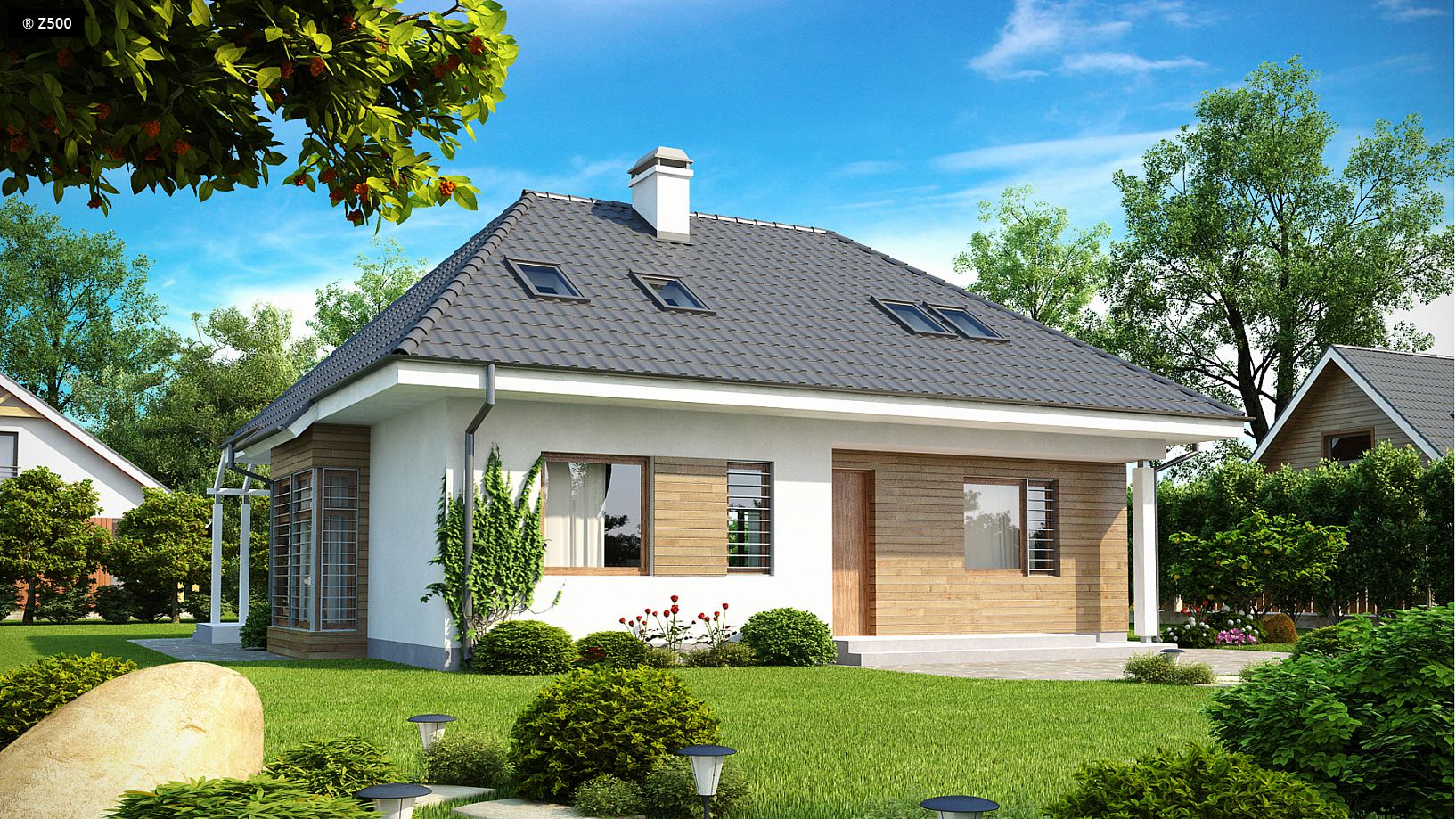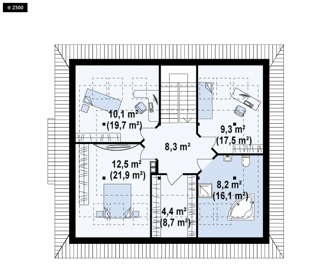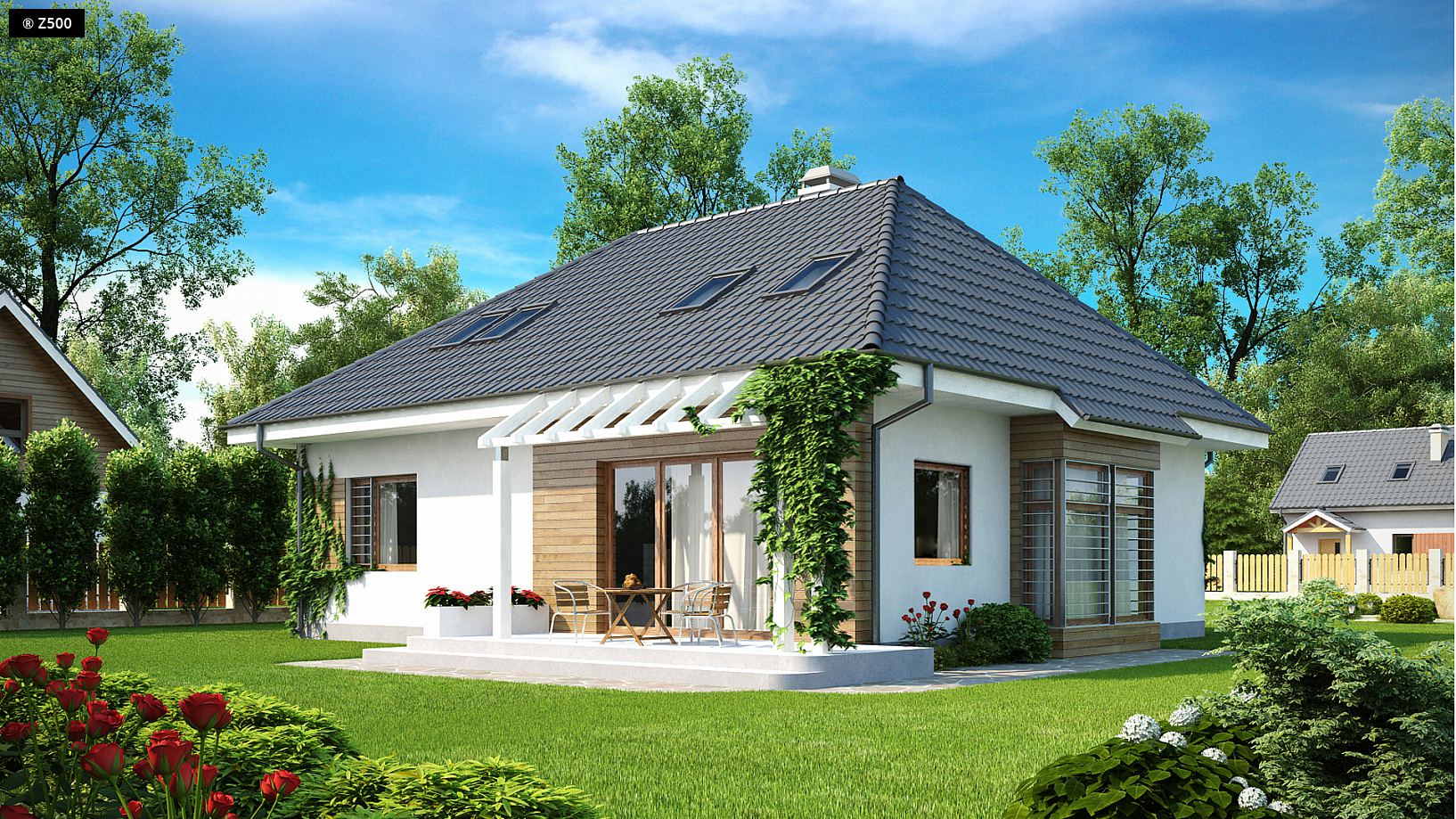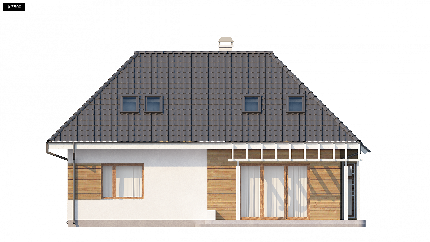 Dach: wielospadowy, nachylenie 45°/32°, pokrycie z dachówki, blachodachówki