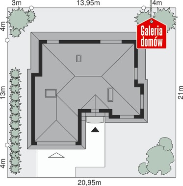 Dach: wielospadowy, nachylenie 45°, pokrycie z dachówki ceramicznej lub betonowej