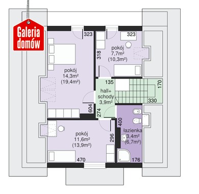 Dach: dwuspadowy, nachylenie 38°, pokrycie z dachówki ceramicznej lub betonowej