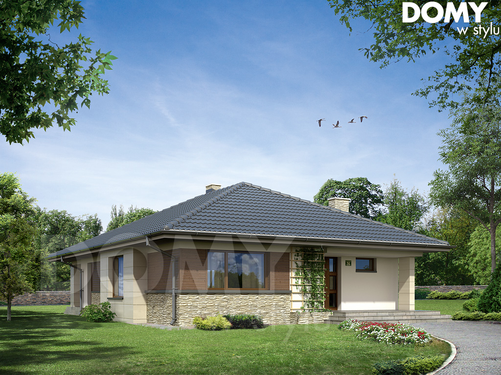 Słoneczny, przyjazny i niezwykle wygodny – tak w kilku słowach można scharakteryzować projekt Aster. Dzięki umiejętnemu połączeniu kamienia i drewna tradycyjna bryła budynku nabrała nowoczesnego charakteru. Budynek odznacza się przemyślanym układem funkcjonalnym; świadczy o tym obecność: przestronnego salonu, zadaszonego tarasu, sporej jadalni, spiżarni przy kuchni oraz trzech wygodnych pokoi.