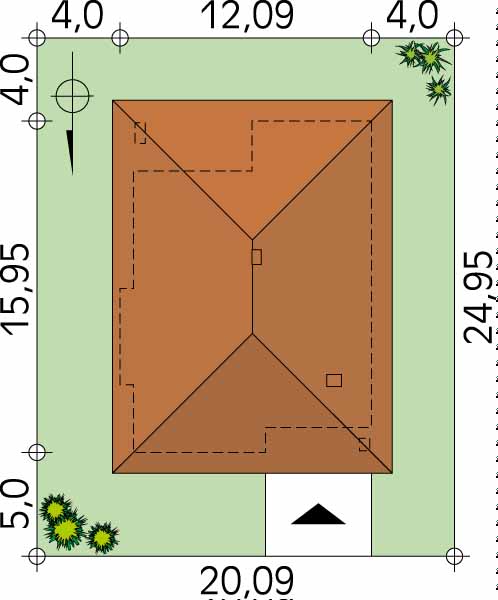 Dach: wielospadowy, nachylenie 25°, pokrycie z dachówki