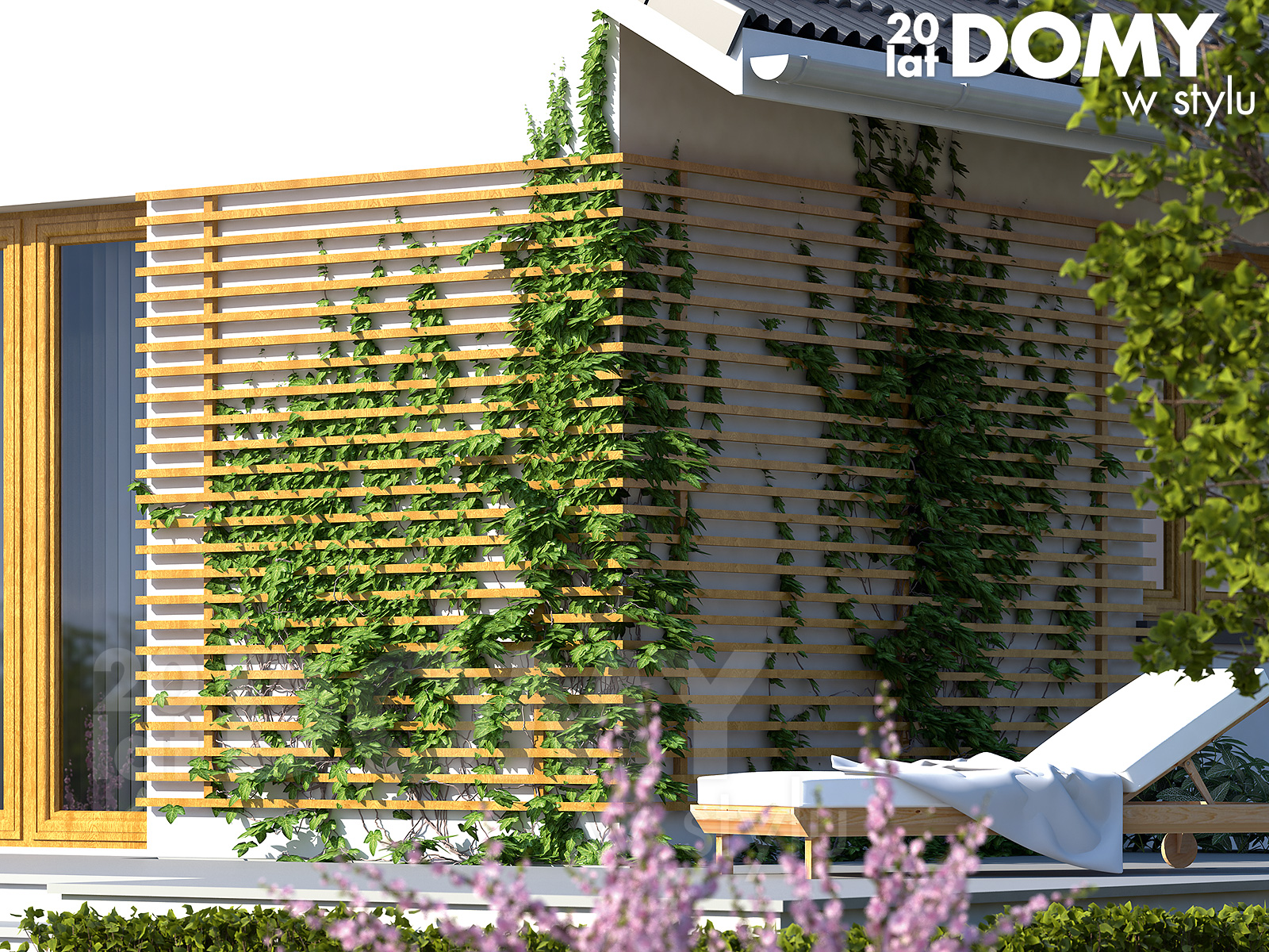 Dach: dwuspadowy, nachylenie 30°, pokrycie z dachówki ceramicznej