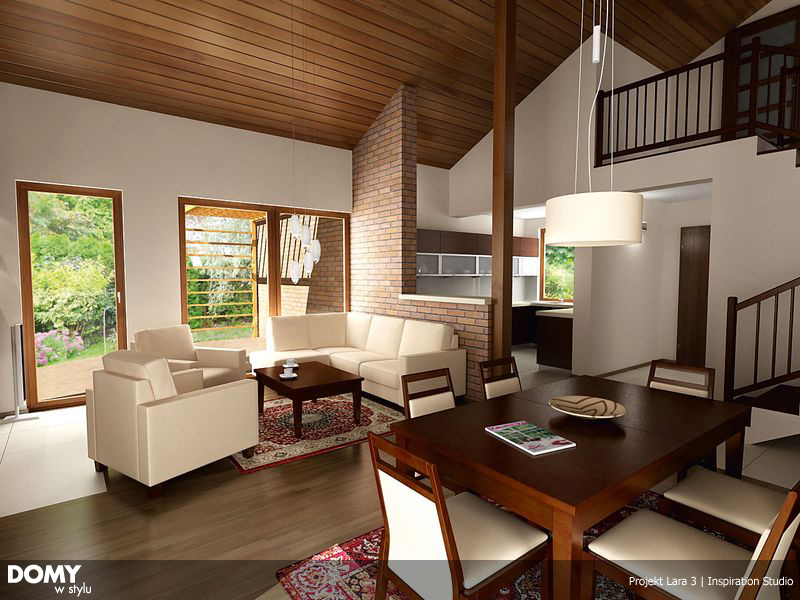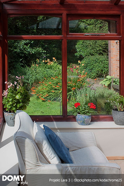 Niewielki, a jednocześnie nowoczesny dom parterowy z garażem w bryle budynku, charakteryzujący się bardzo ciekawą architekturą. Ten zaprojektowany z myślą o 4-osobowej rodzinie budynek zawiera w sobie kuchnię, salon, trzy wygodne sypialnie, łazienkę i toaletę. Elementami znacznie uatrakcyjniającymi architekturę budynku jest oranżeria, liczne tarasy, murki i pergole. Dzięki tym zabiegom dom zgrabnie przenika się z otaczającą go przestrzenią.